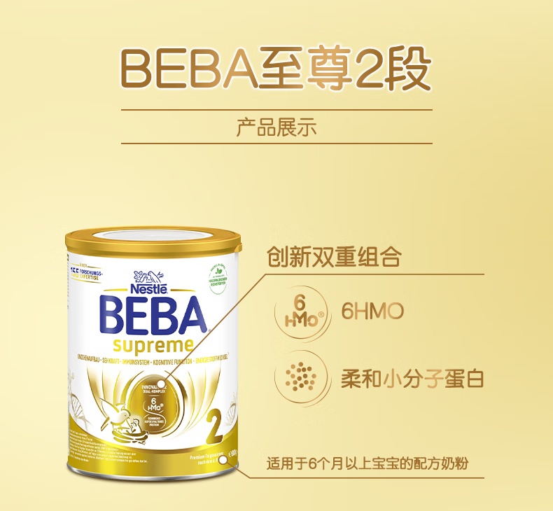 BEBA 德国雀巢贝巴至尊版SUPREME六种HMO婴幼儿奶粉2段 6个月以上 800g 德国本土原版