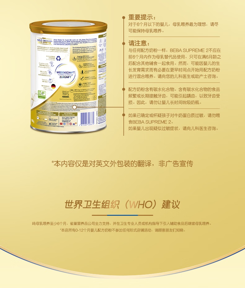 产品名称: BEBA/德国雀巢贝巴SUPREME