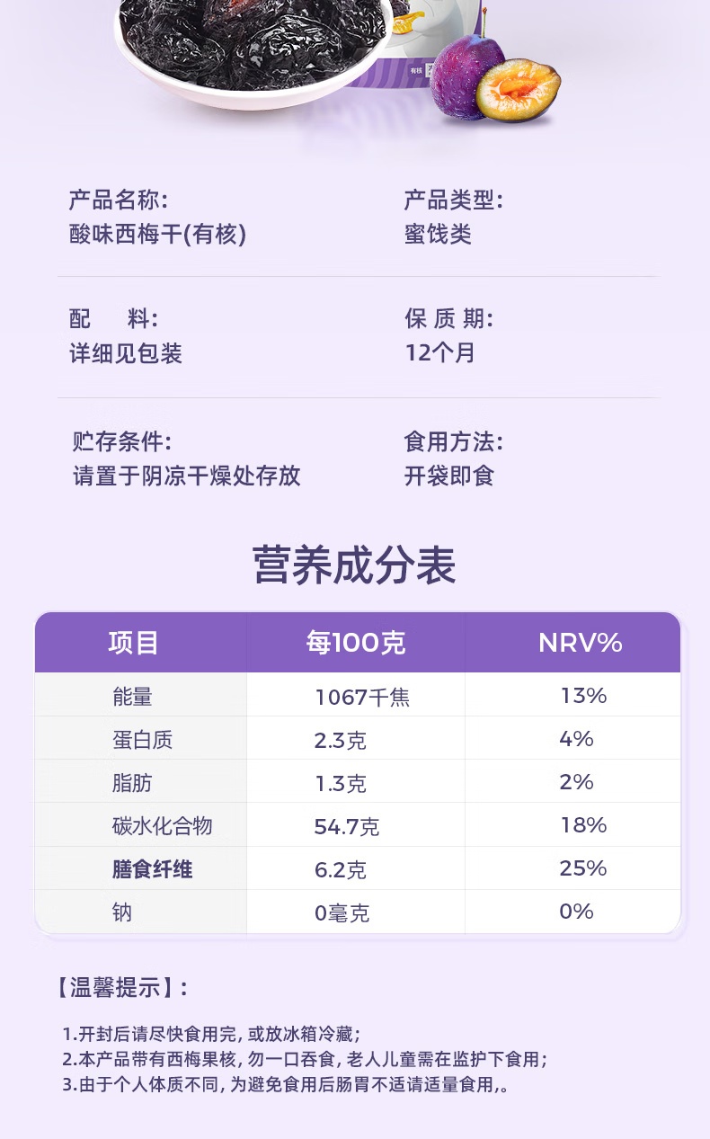 孕味食足酸味西梅干 100g*3袋
