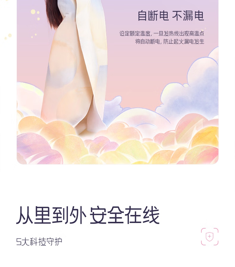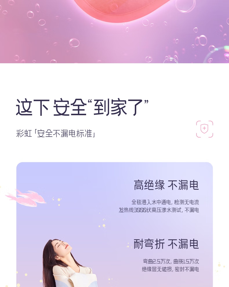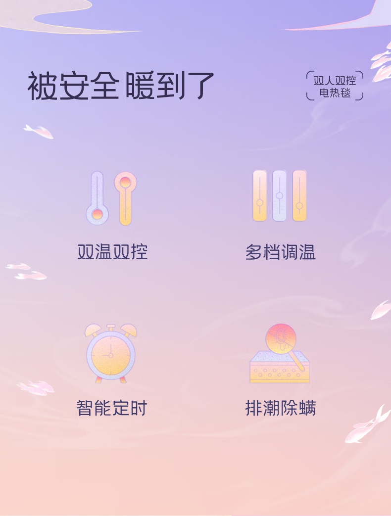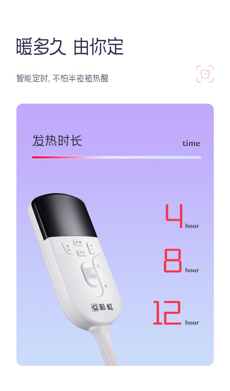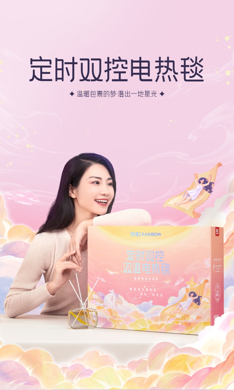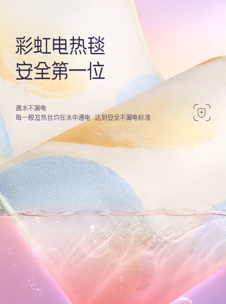 RAINBOW 彩虹双控双温定时除螨化纤印花双人电热毯 180*150cm