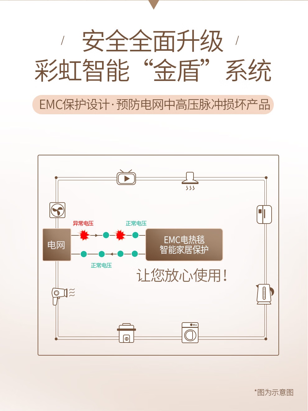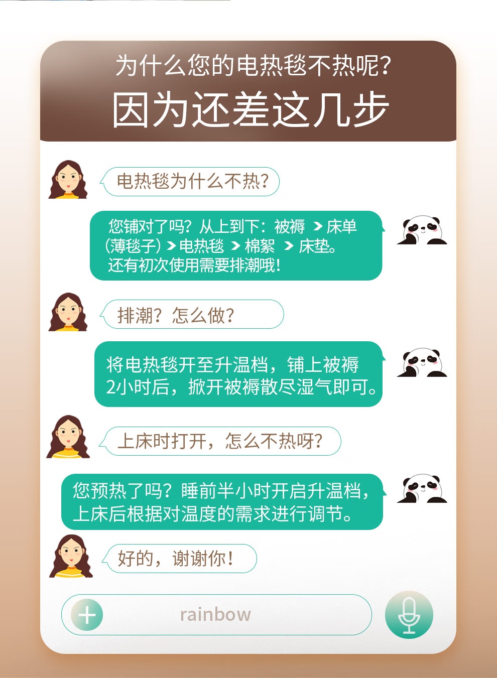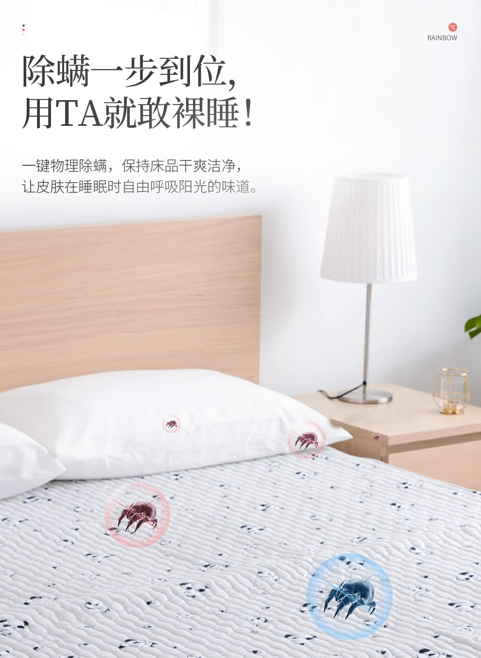 RAINBOW 彩虹双控双温定时除螨纯棉双人电热毯 花色随机 200*180cm