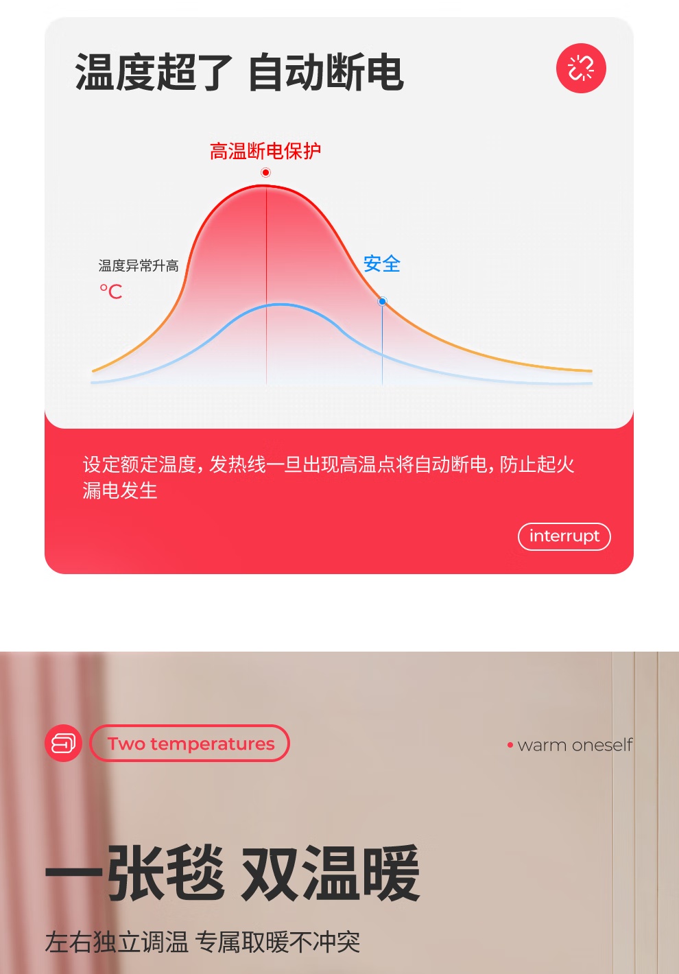 RAINBOW 彩虹双控双温调温定时双面纯棉双人电热毯 200*180cm