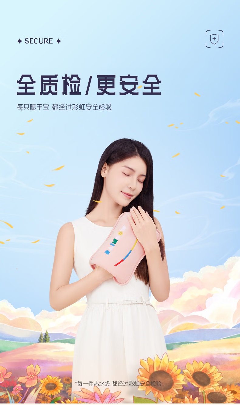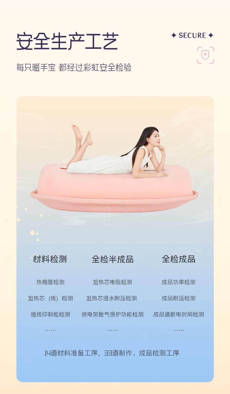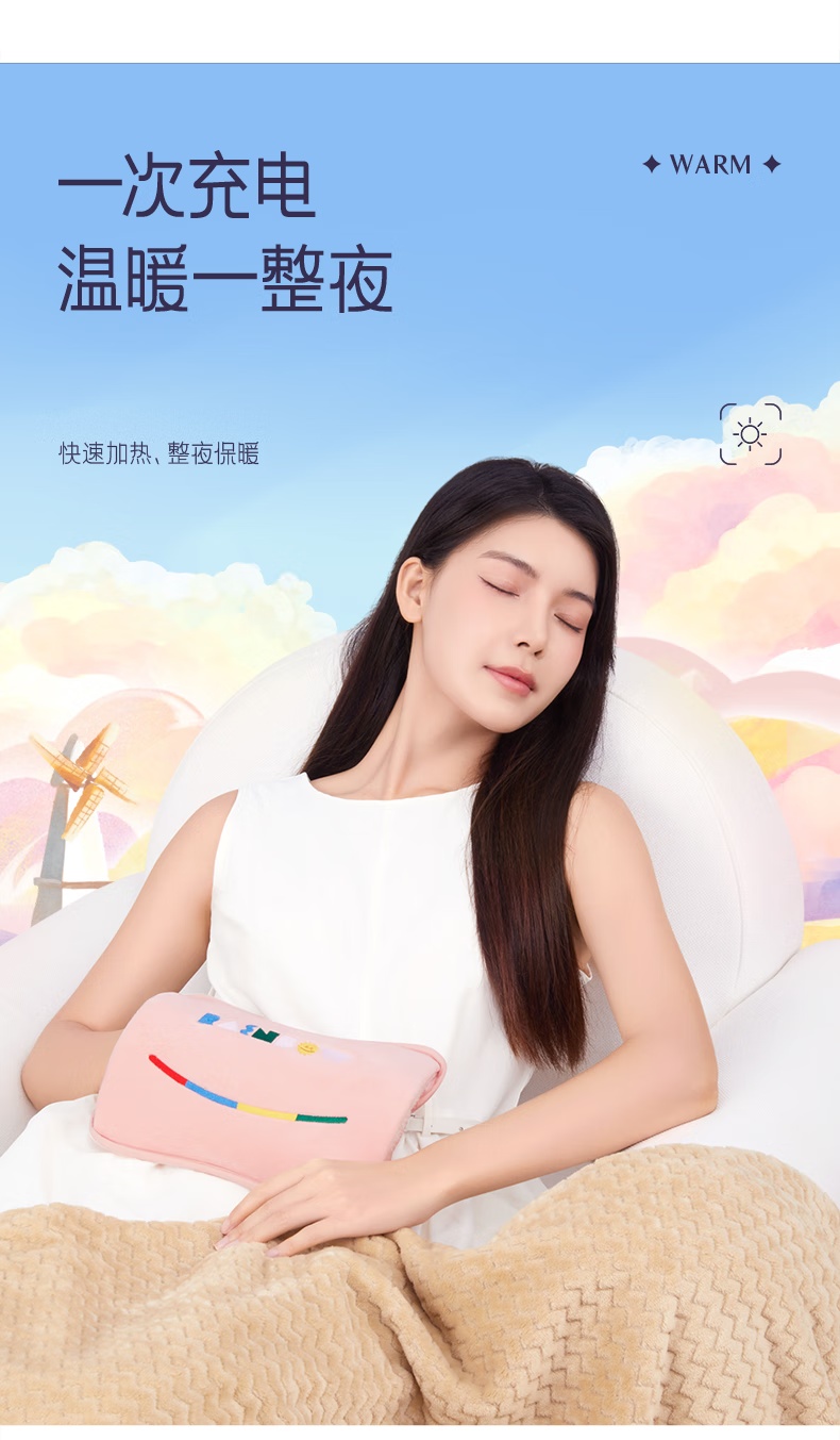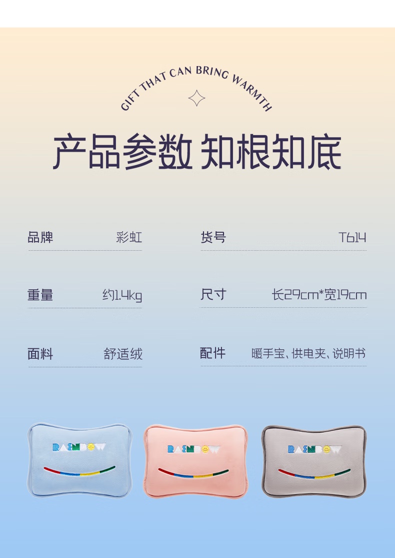 RAINBOW 彩虹免洗加厚亲肤绒插手电热暖手宝 粉色