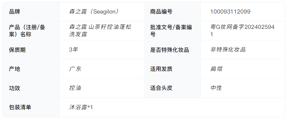 Seagilon 森之露山茶籽控油蓬松洗发水 520ml