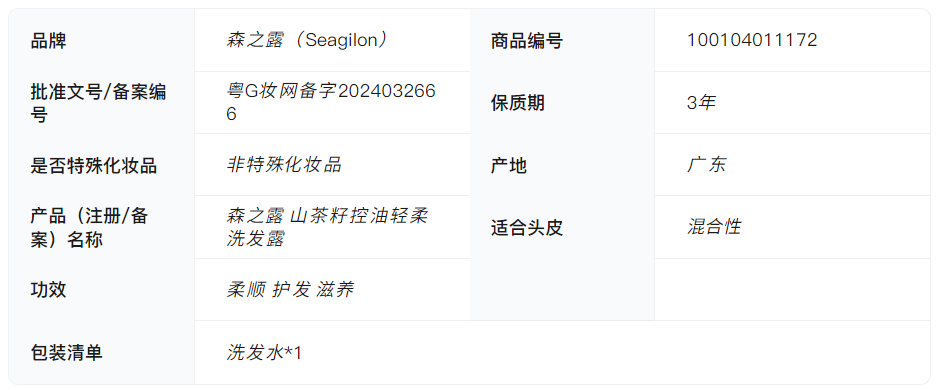 Seagilon 森之露山茶籽控油轻柔洗发水 520ml