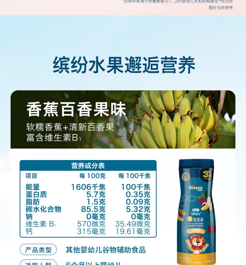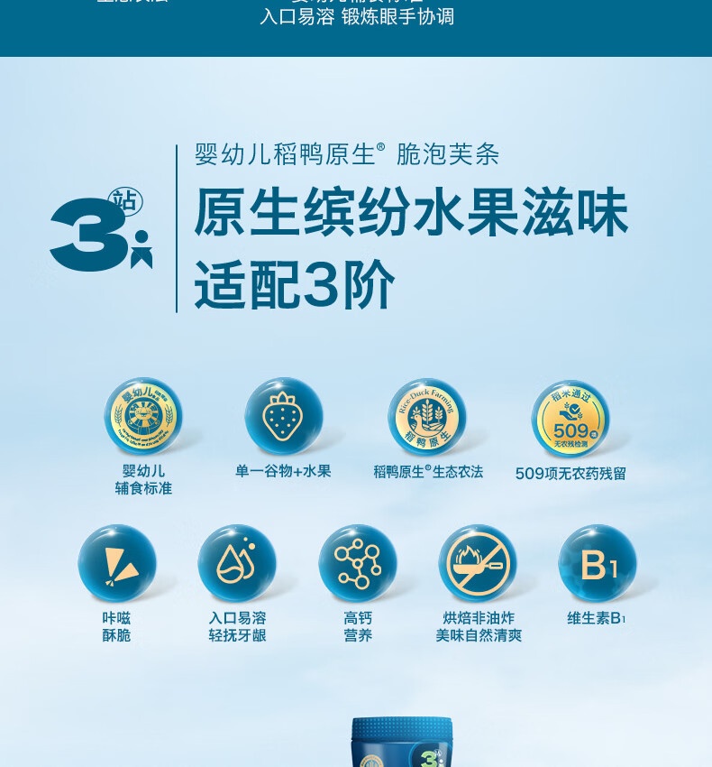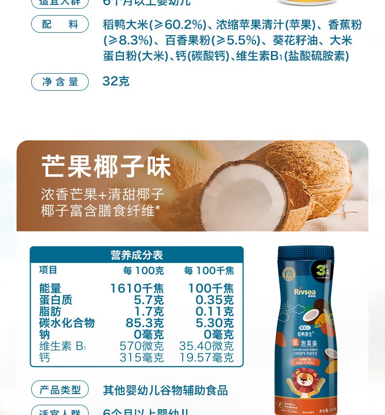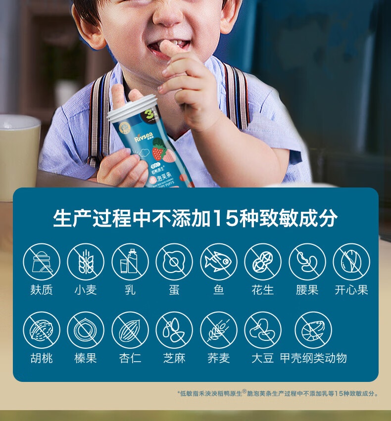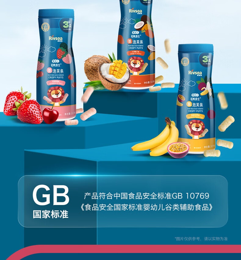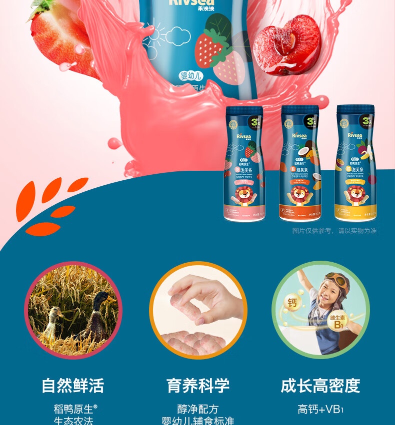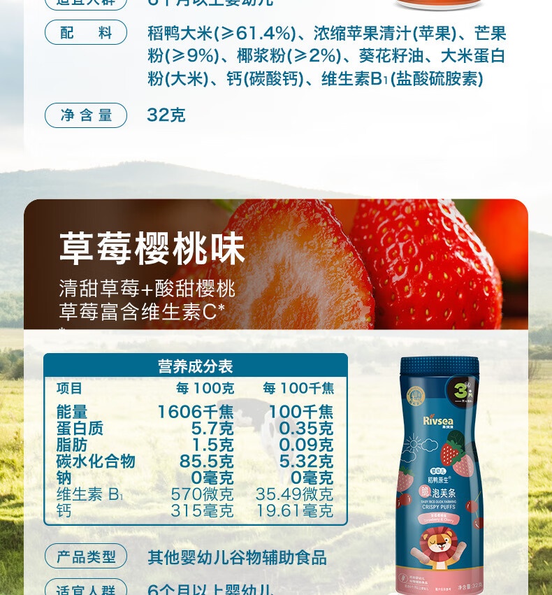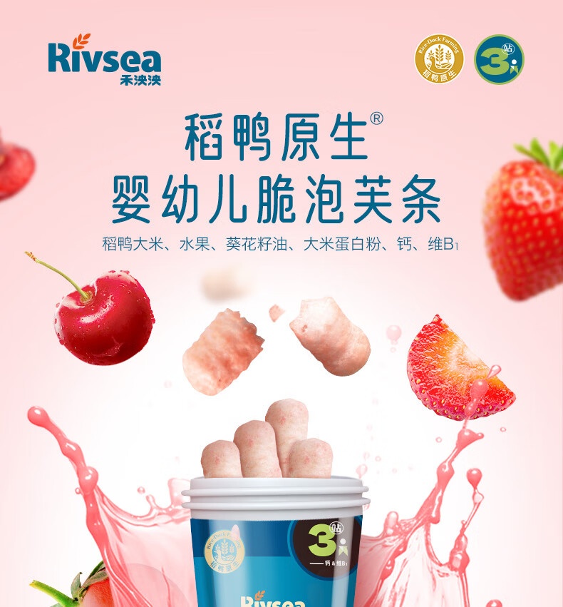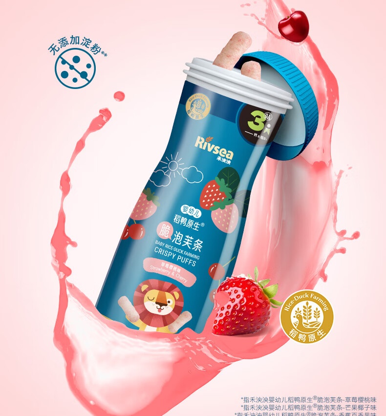 Rivsea 禾泱泱婴幼儿稻鸭原生脆泡芙条 草莓樱桃味 32g