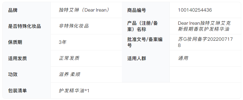 Dear lrean 独特艾琳香氛护发精油 40ml