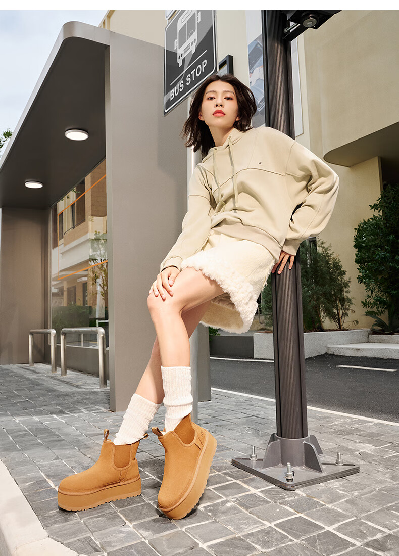 UGG 秋季女士纯色厚底雪地烟囱靴
