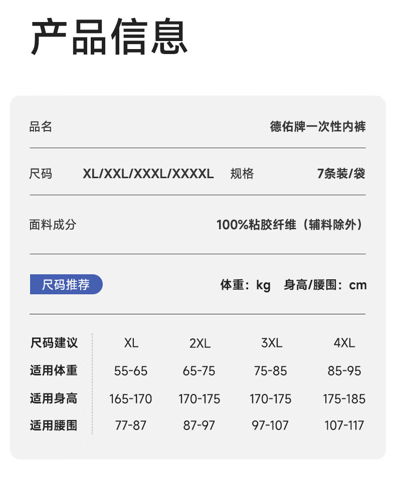 Deeyeo 德佑7A抑菌一次性女士内裤 7条装 2XL码