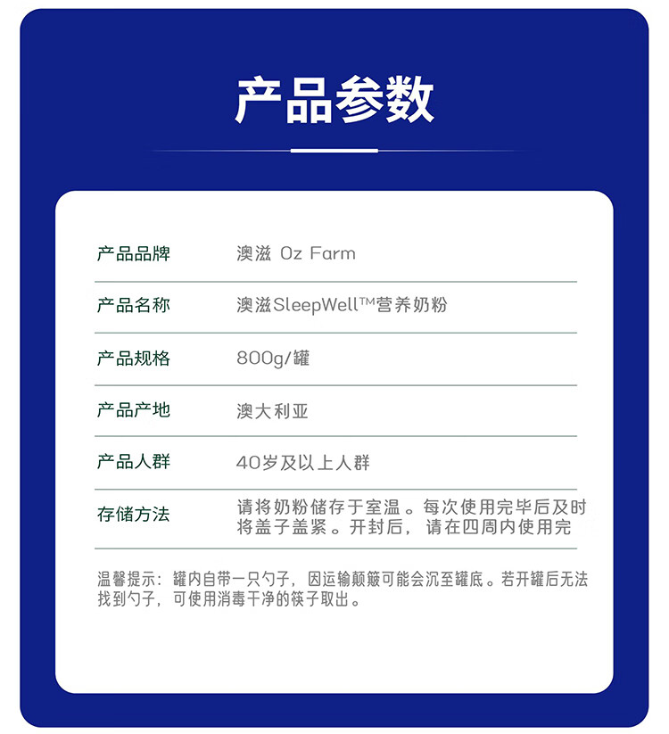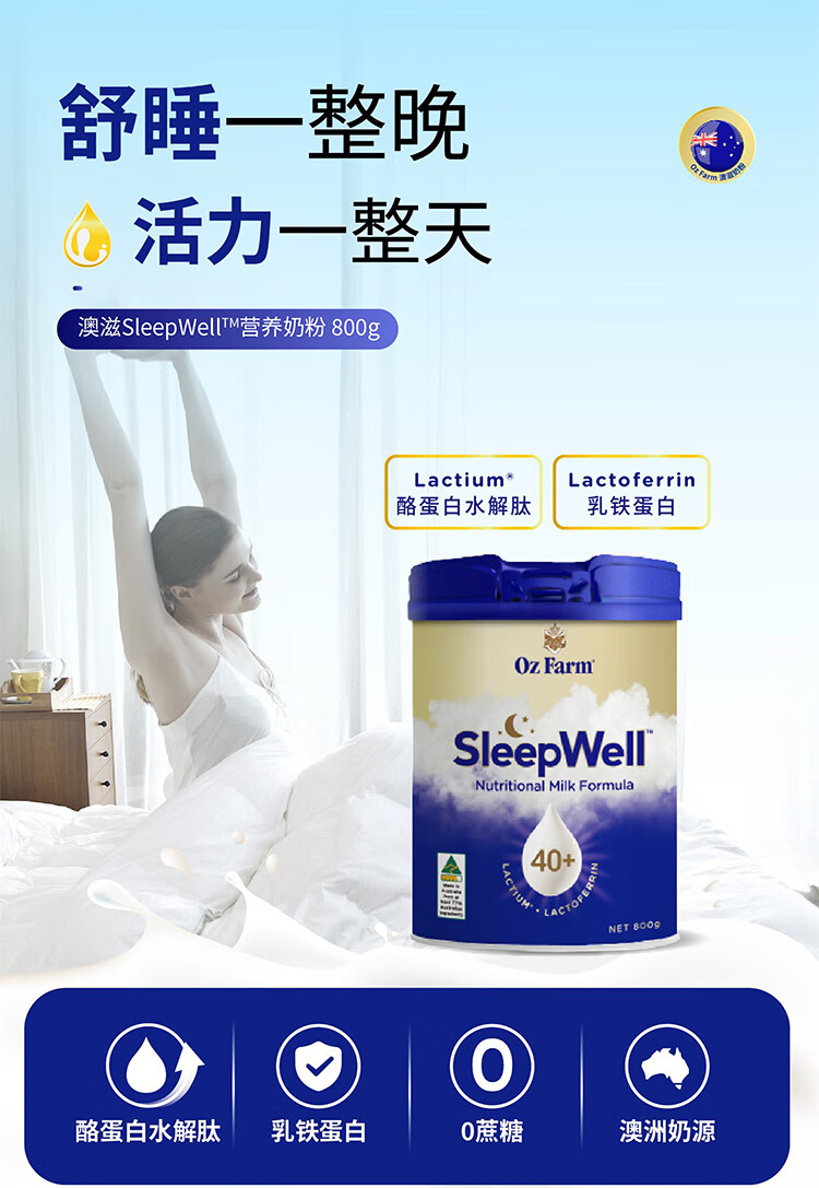 OZ FARM 澳洲澳滋SleepWell睡眠粉营养配方奶粉 800g 海外本土原版