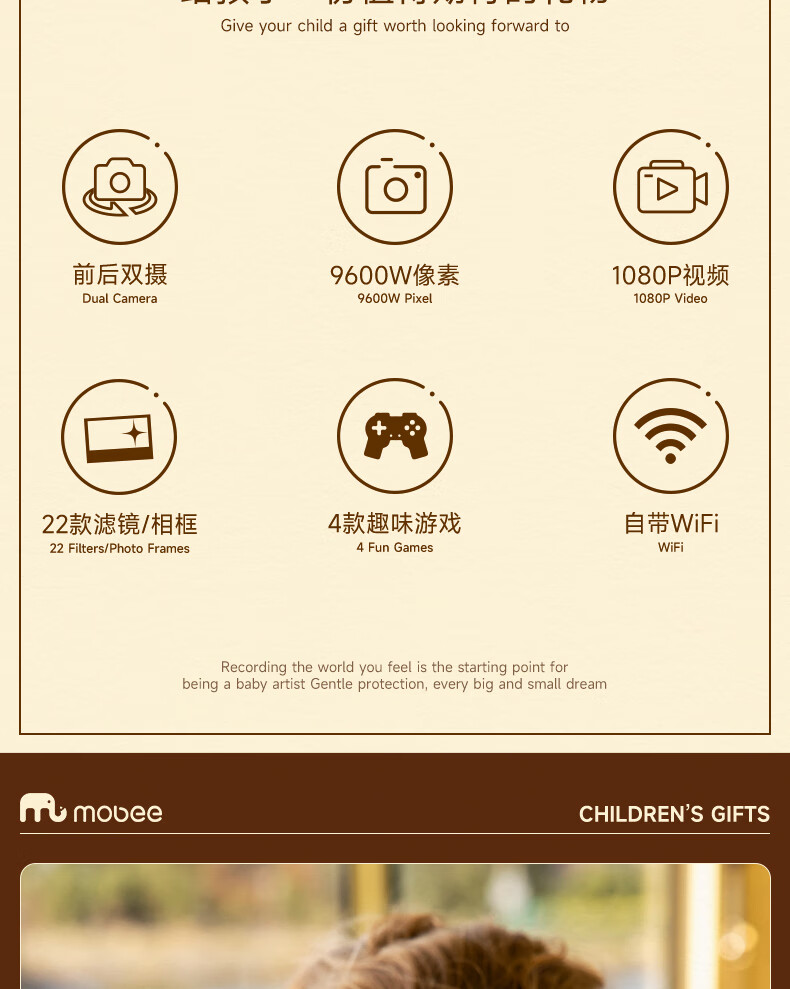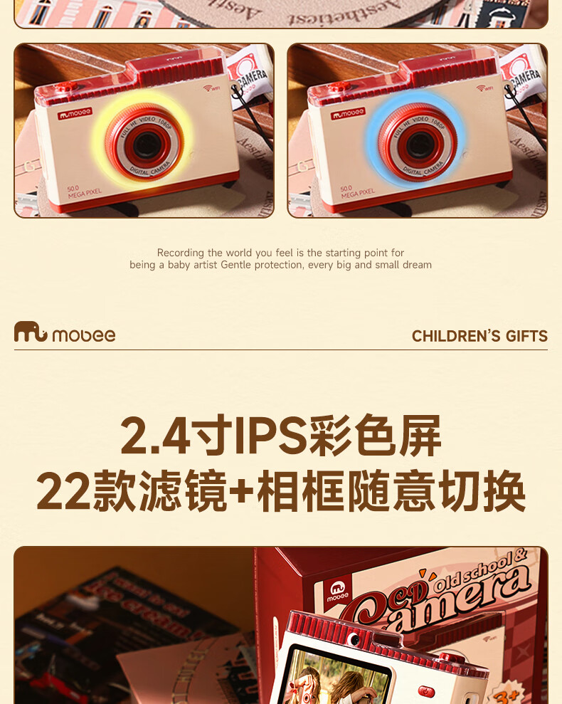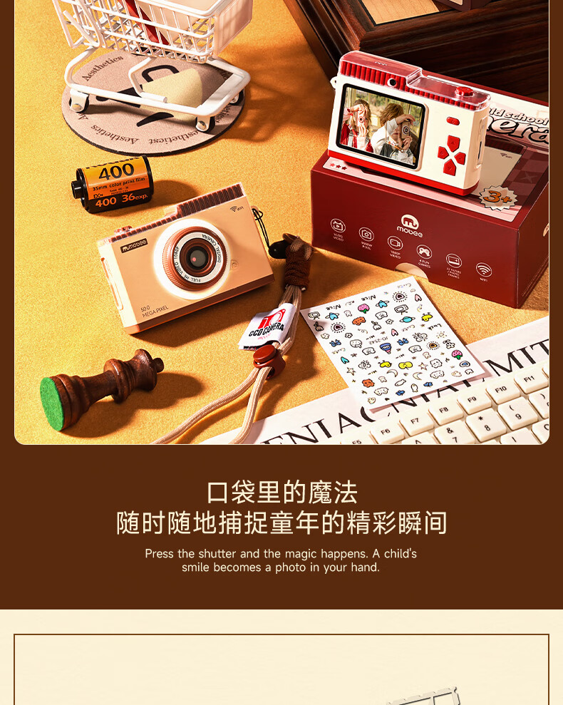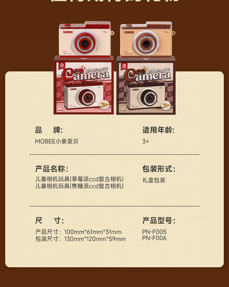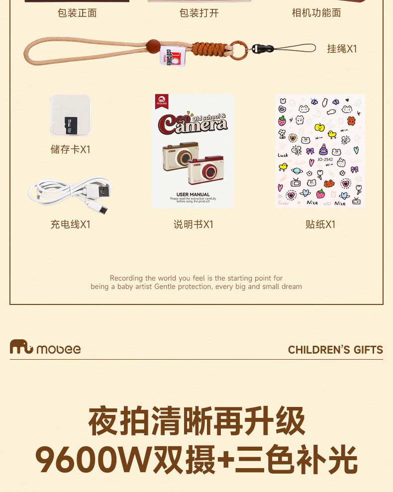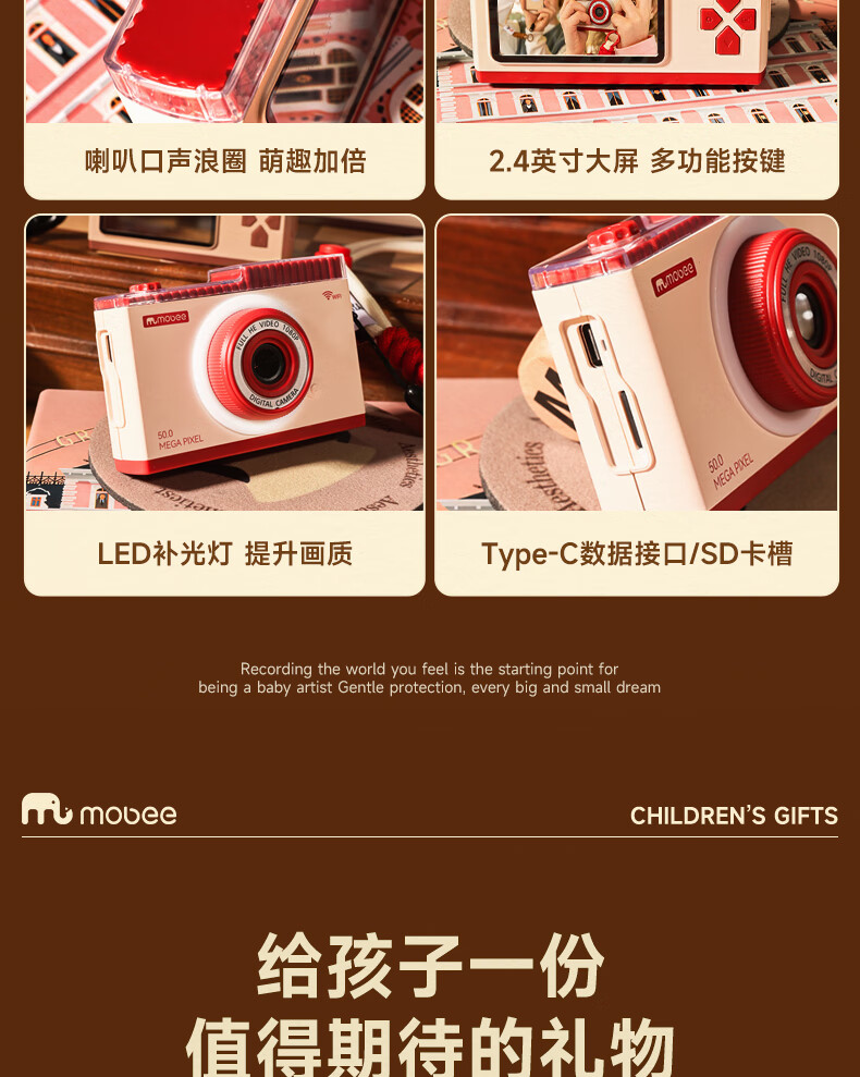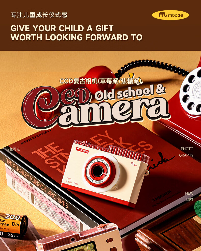 Mobee 小象莫贝儿童ccd复古相机玩具 草莓派