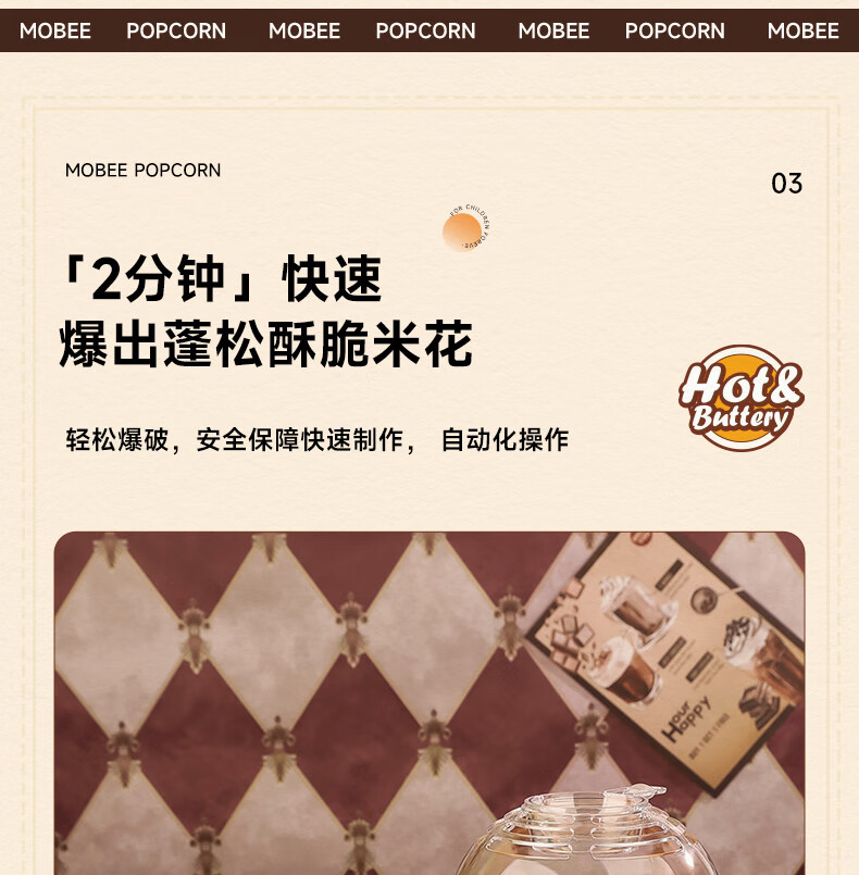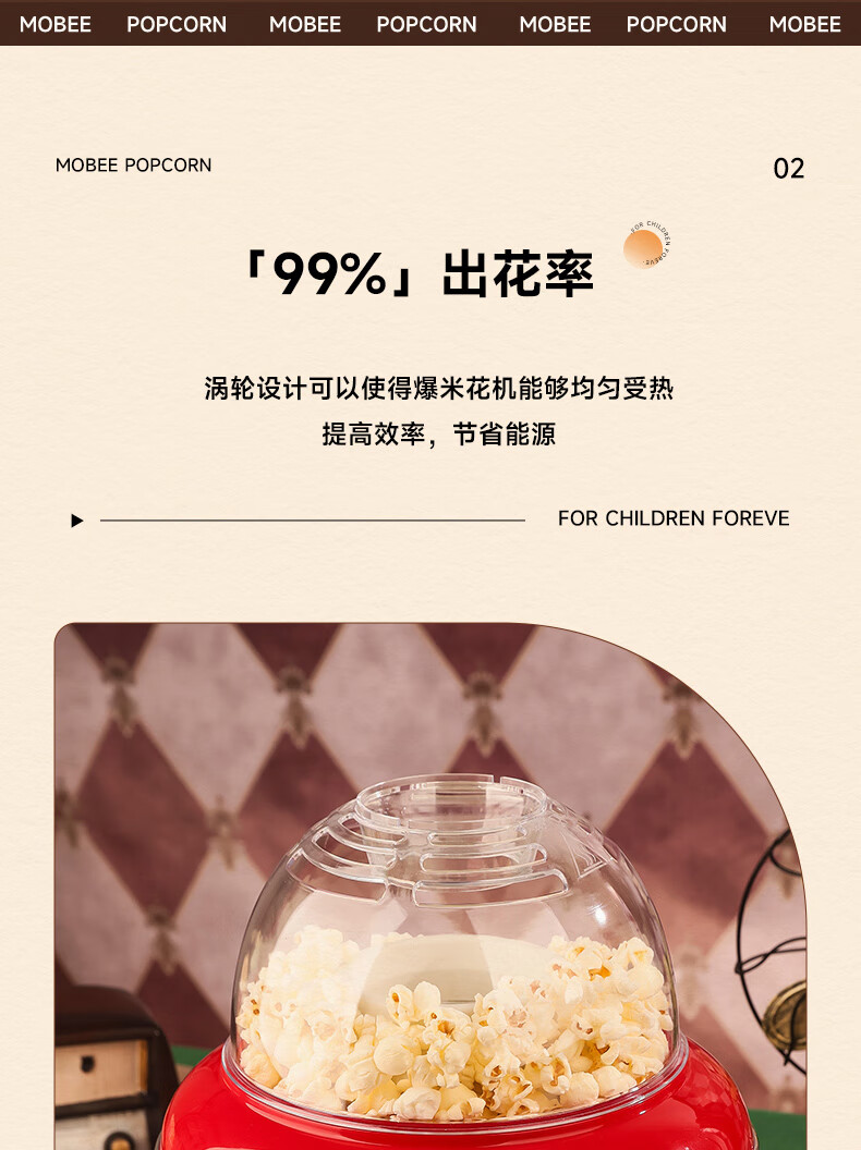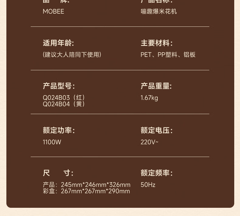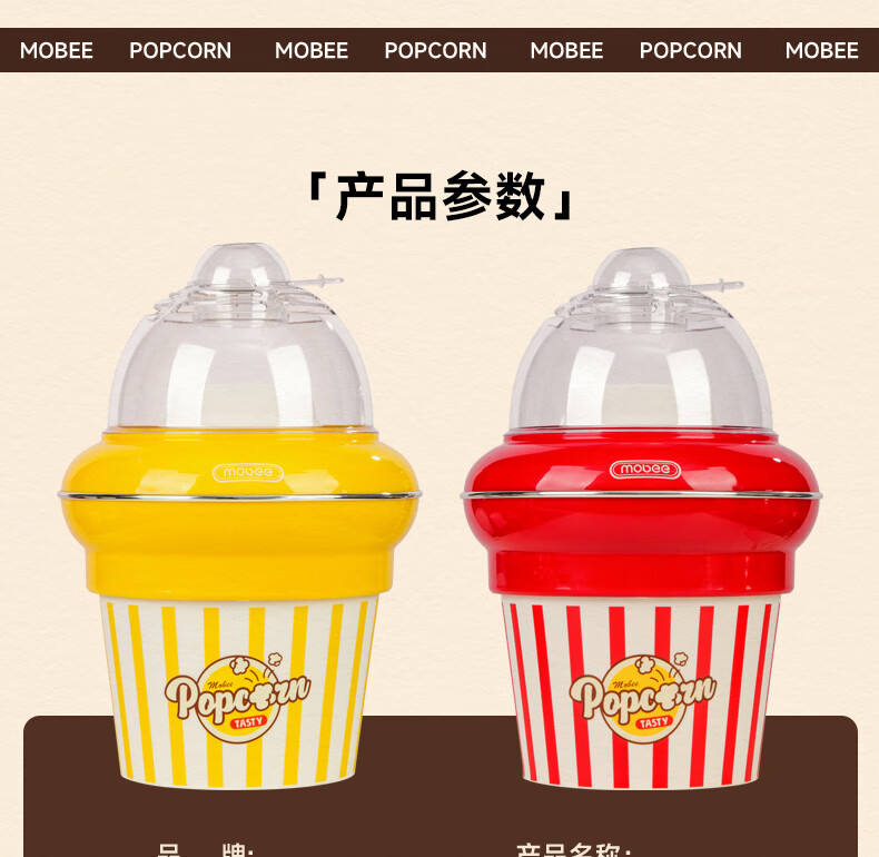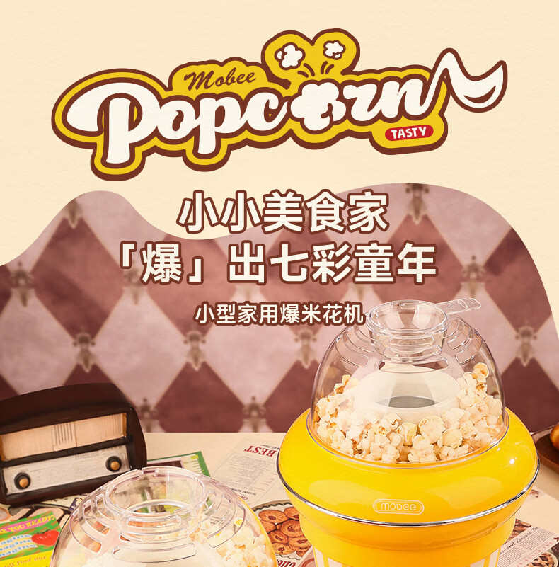 Mobee 小象莫贝小型家用嘣趣爆米花机 黄色