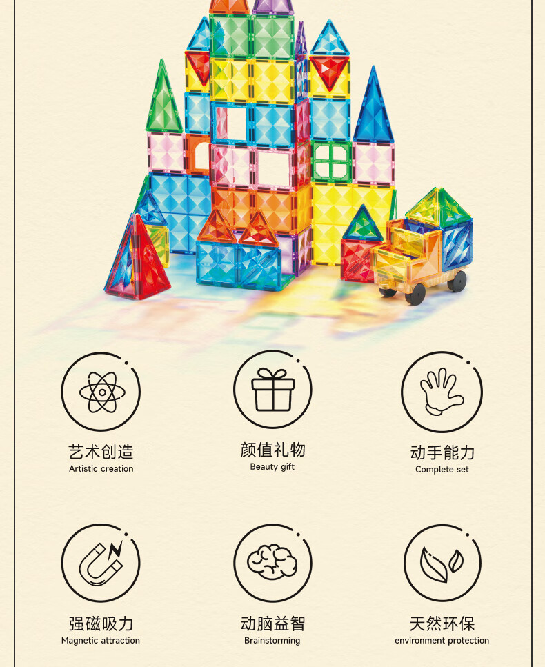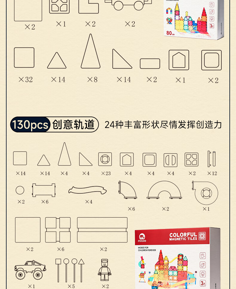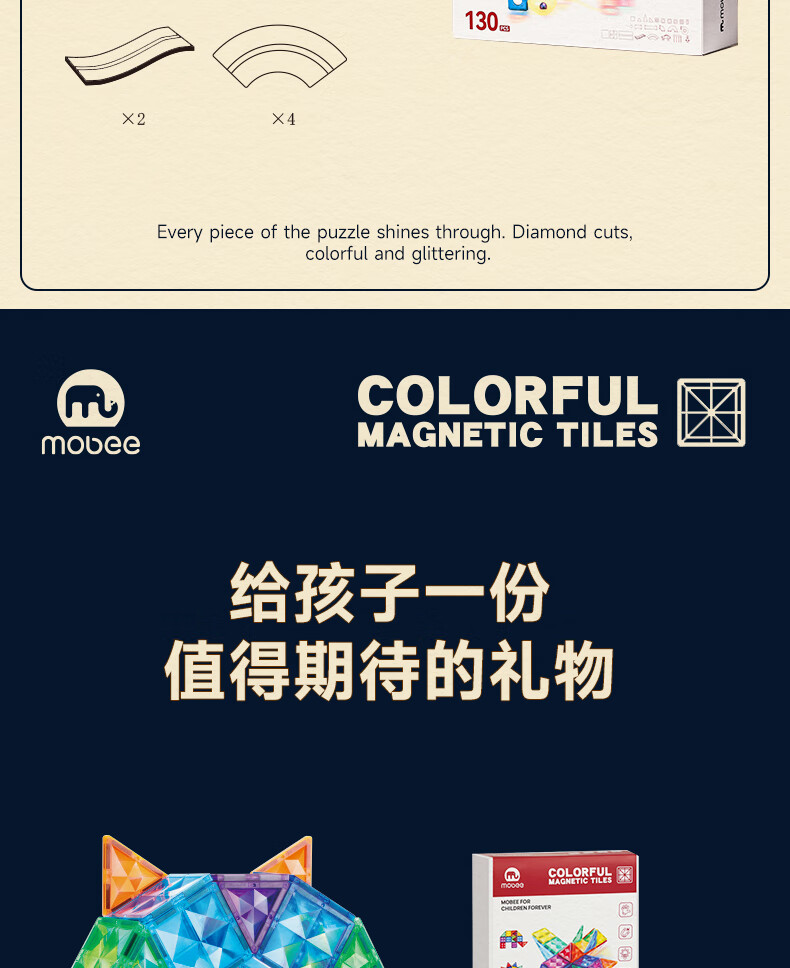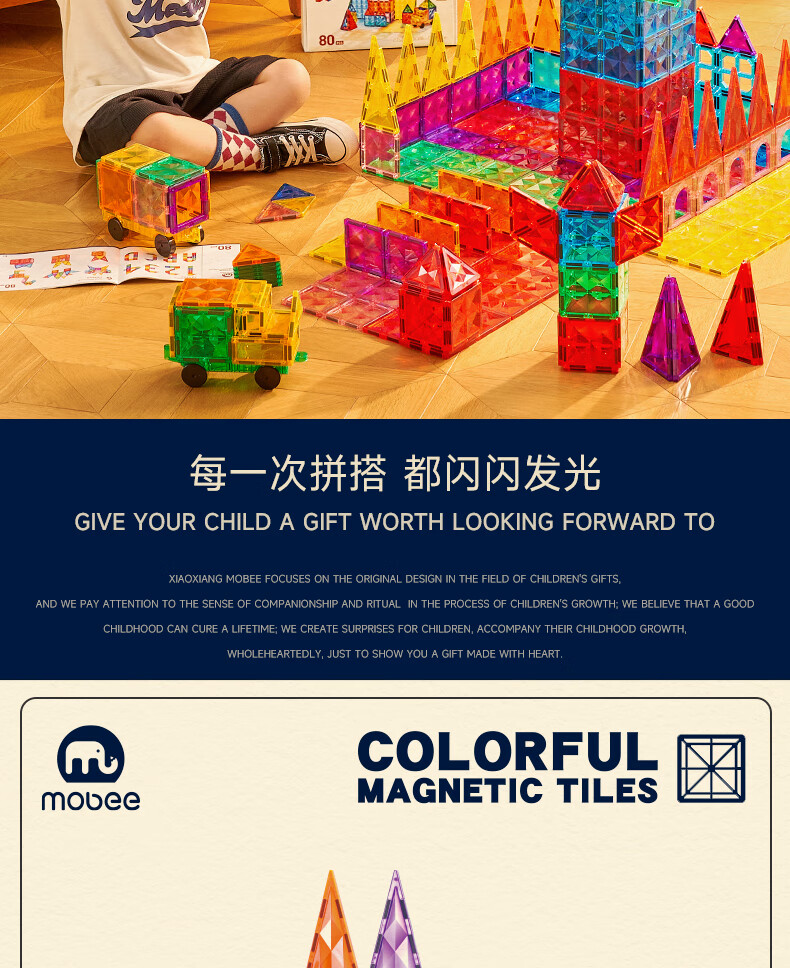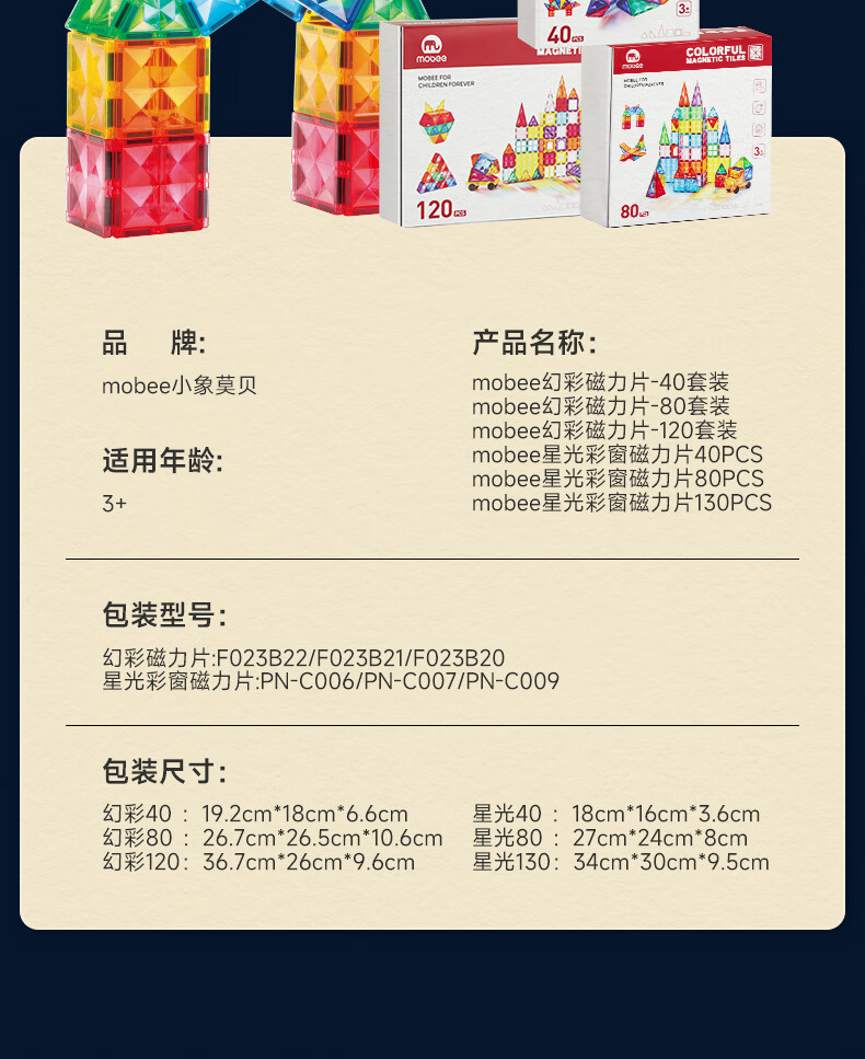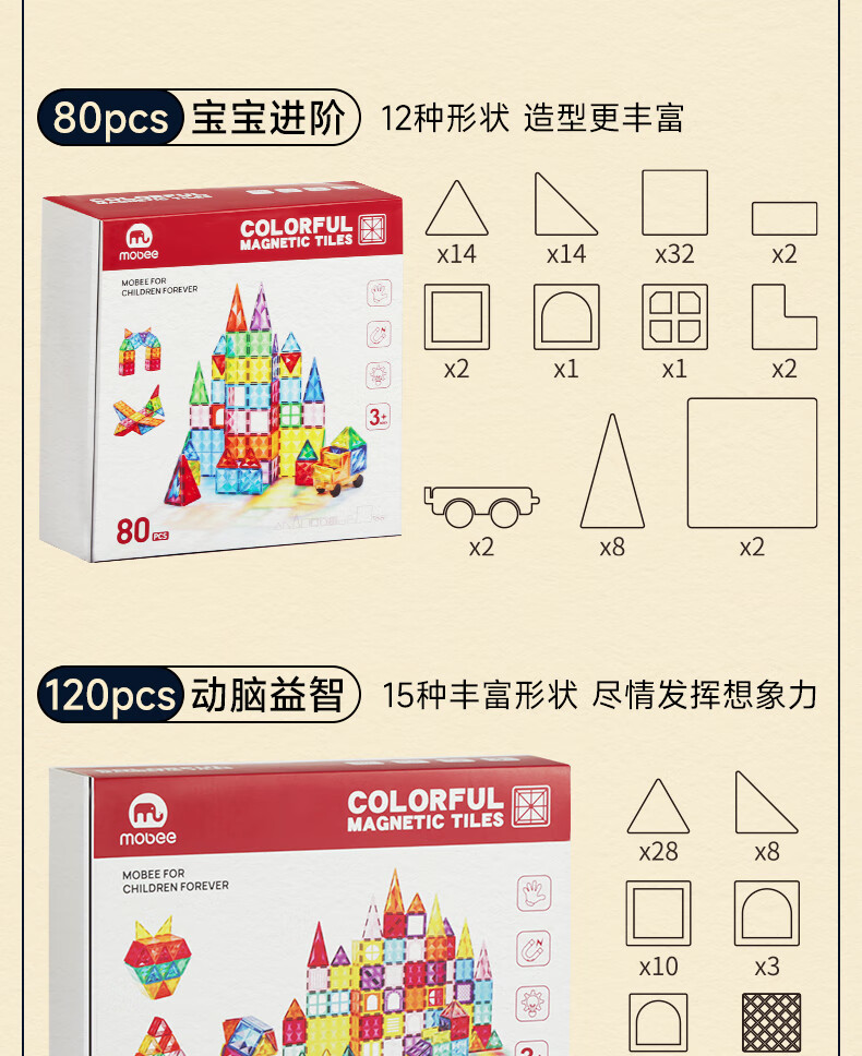 Mobee 小象莫贝儿童幻彩磁力片 120PCS