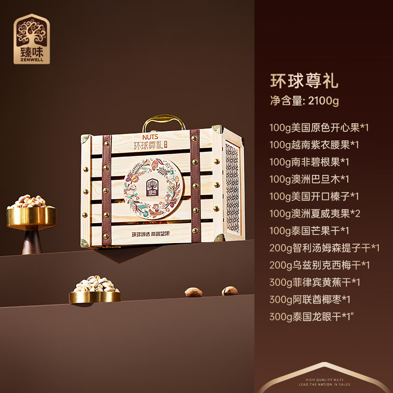 | 规格: | 100g美国原色开心果*1 100g越南紫衣腰果*1 100g南非碧根果*1 100g澳洲巴旦木*1 100g美国开口榛子*1 100g澳洲夏威夷果*2 100g泰国芒果干*1 200g智利汤姆森提子干*1 200g乌兹别克西梅干*1 300g菲律宾黄蕉干*1 300g阿联酋椰枣*1 300g泰国龙眼干*1 |
