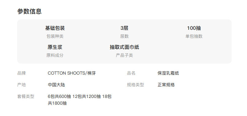 | 规格: | 100抽*6包 |