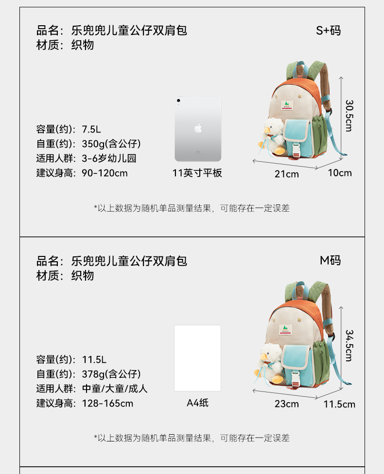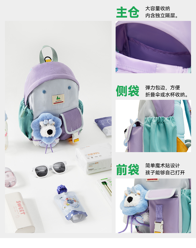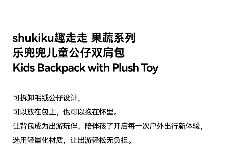 Shukiku 趣走走乐兜兜儿童公仔双肩包 海盐茄紫 M+