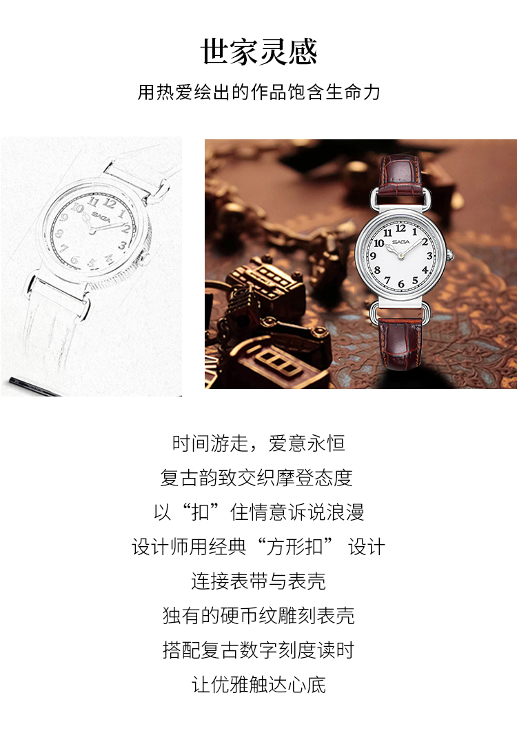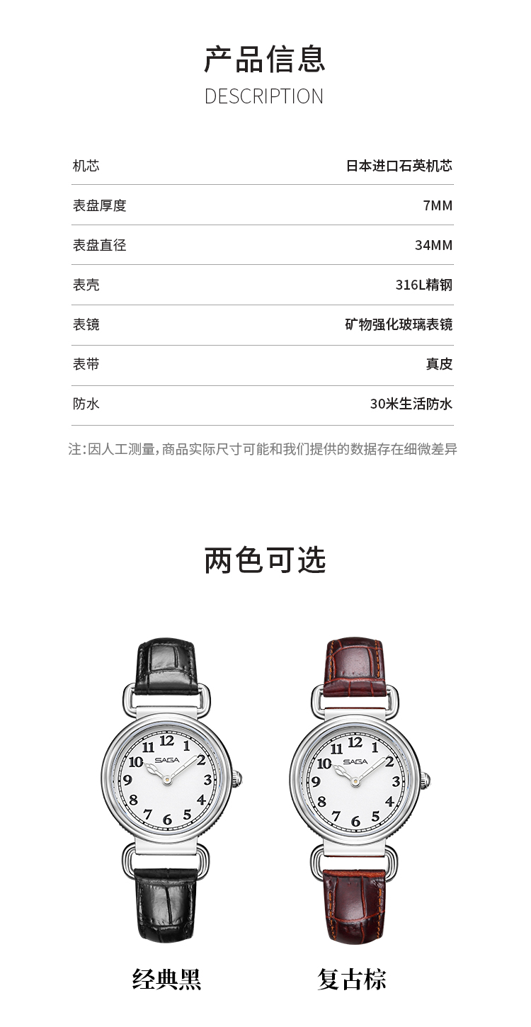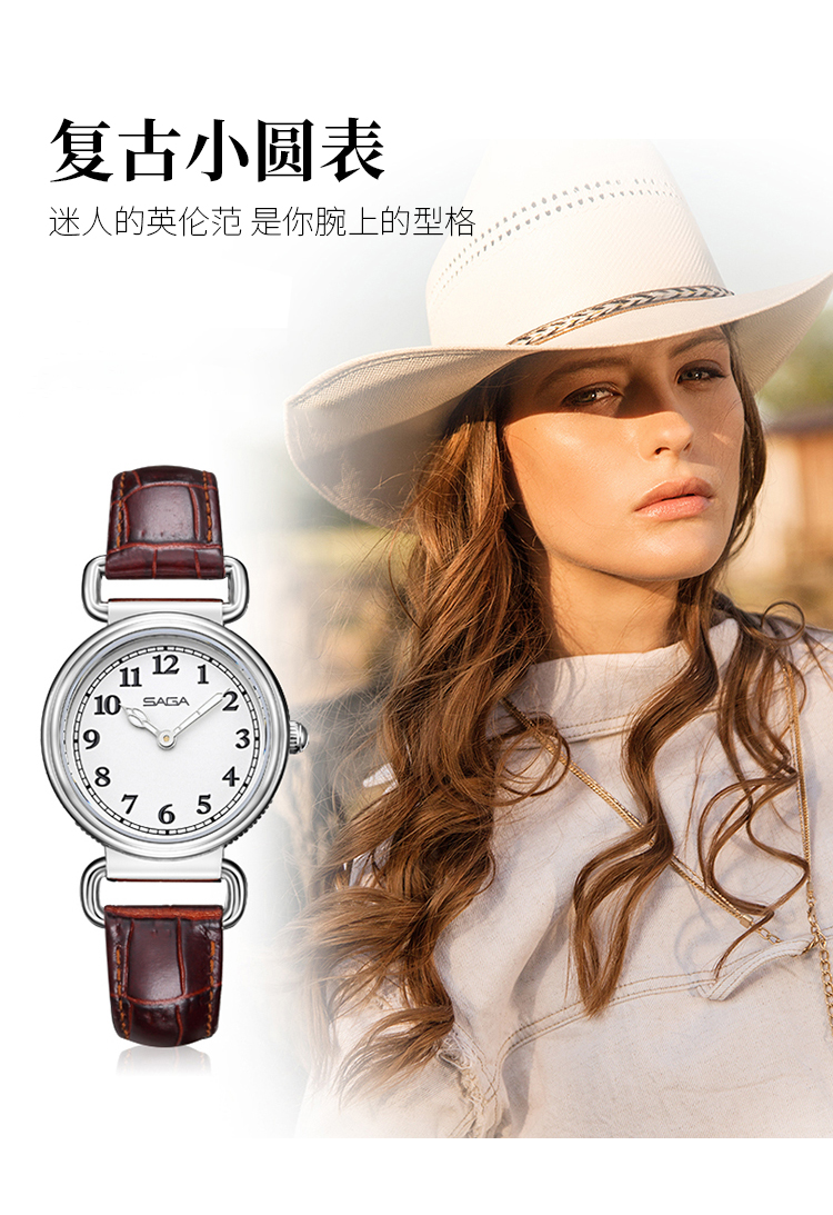 SAGA 世家复古小圆表 复古棕