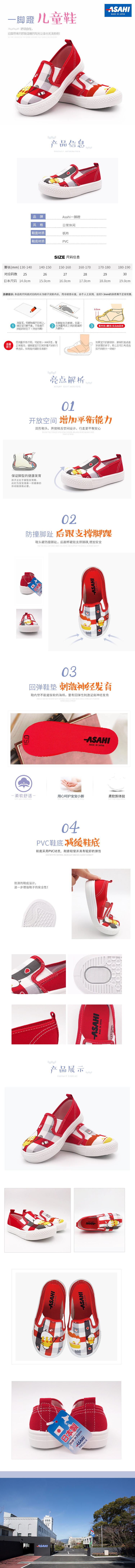 ASAHI 日本朝日儿童一脚蹬红色小鸡帆布鞋