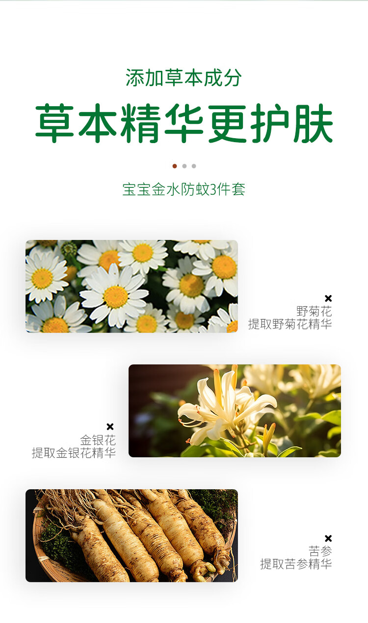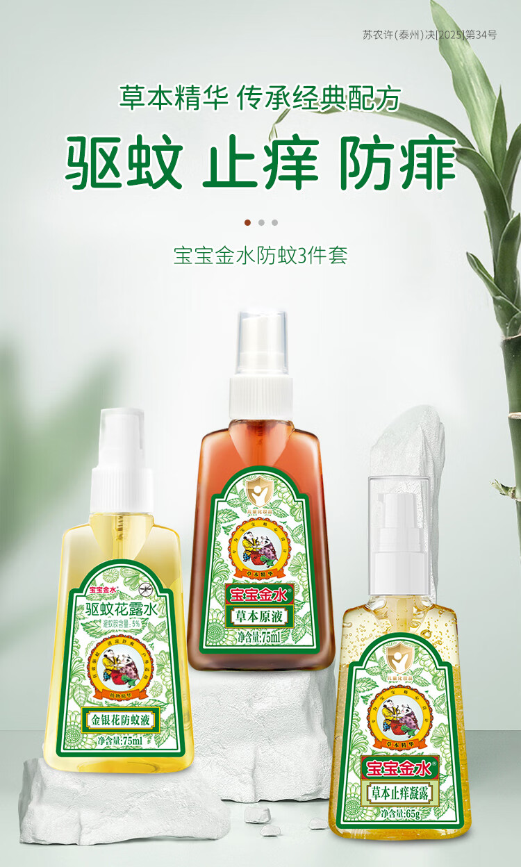 | 净含量: | 草本原液95ml+草本凝露85g+金银花防蚊液95ml |