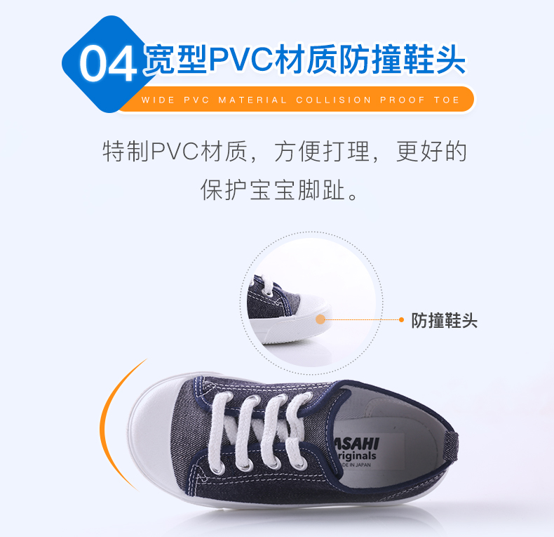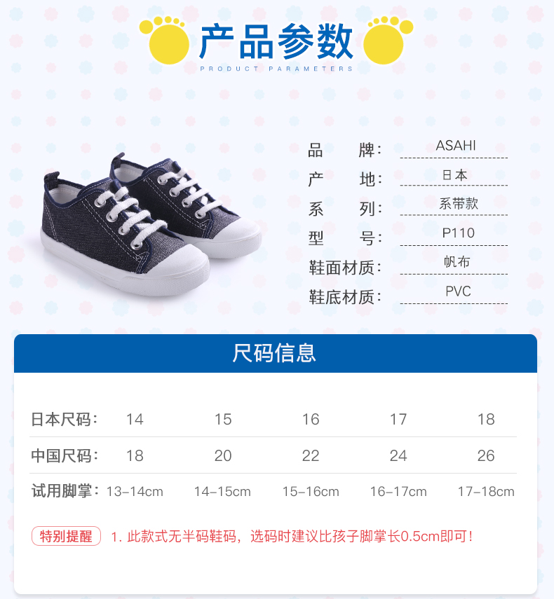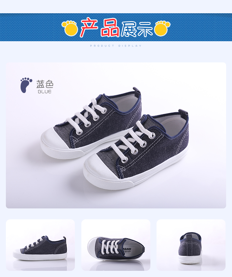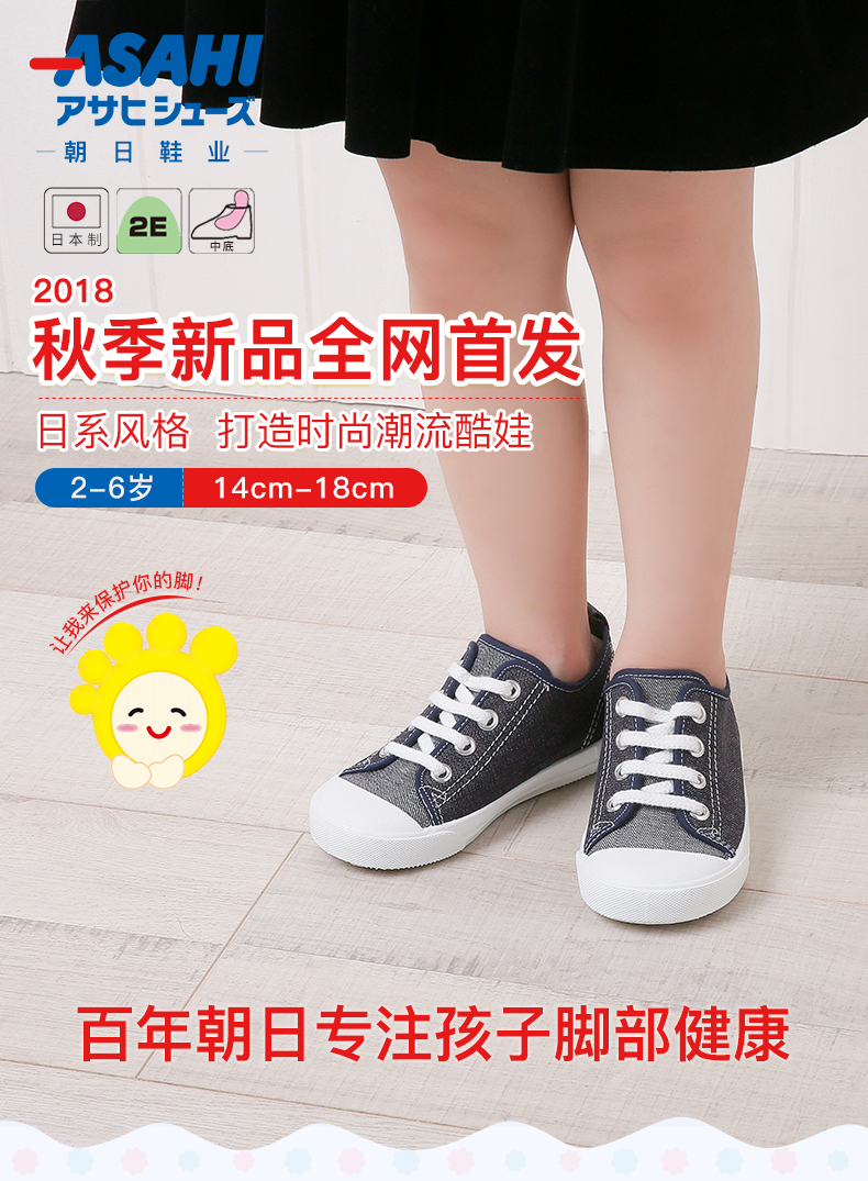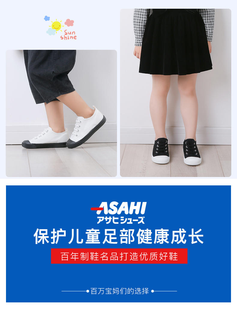 ASAHI 日本朝日儿童系带款黑色帆布鞋