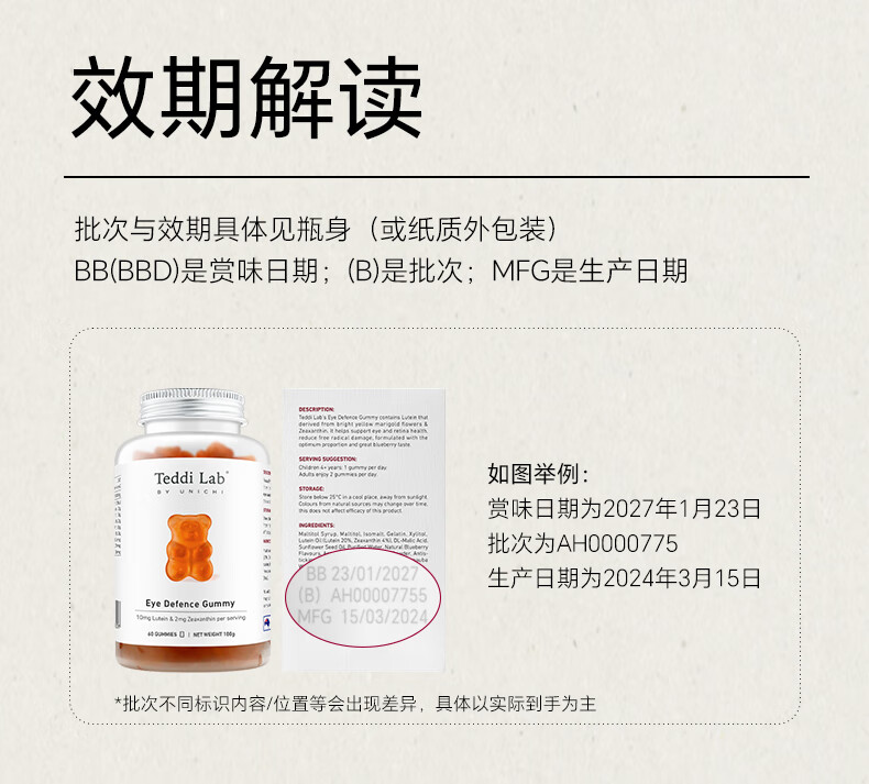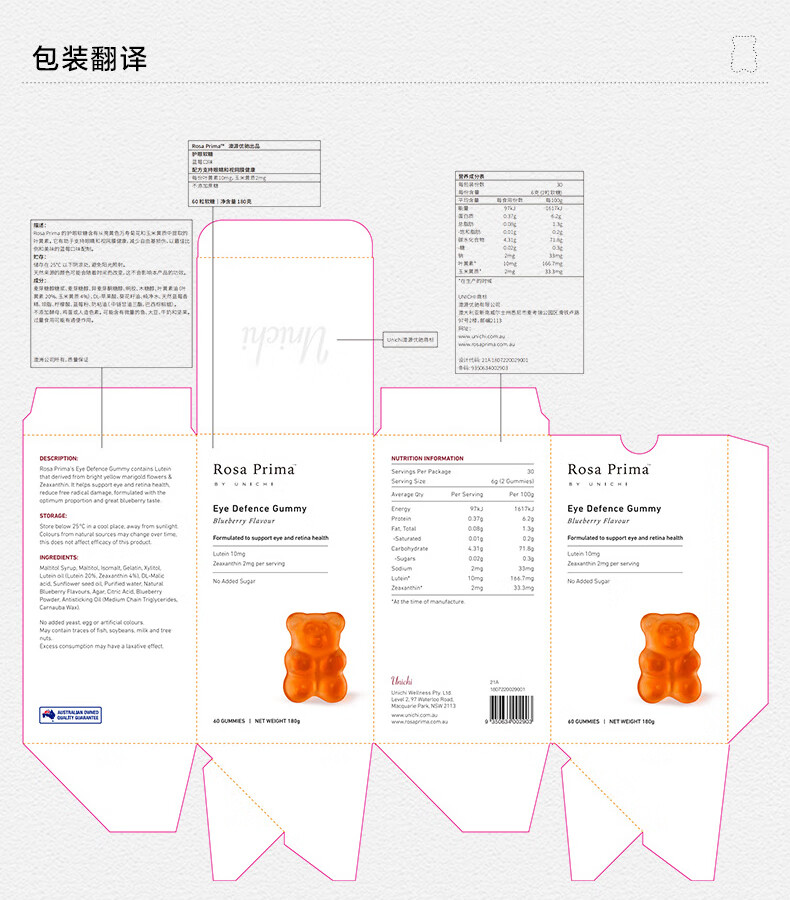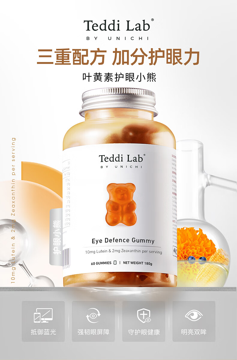 Unichi 澳洲Unichi叶黄素护眼小熊软糖 60粒 海外本土原版