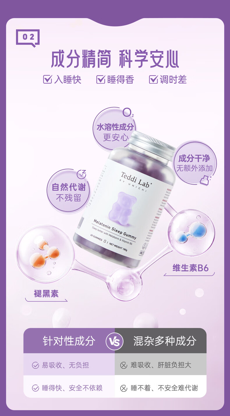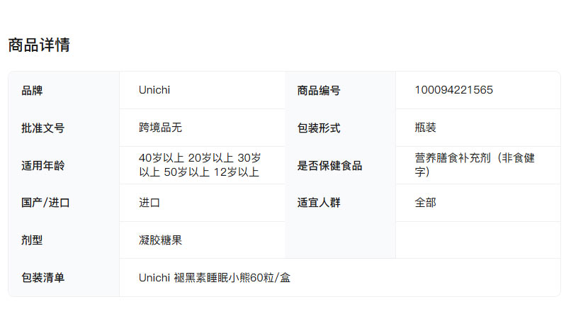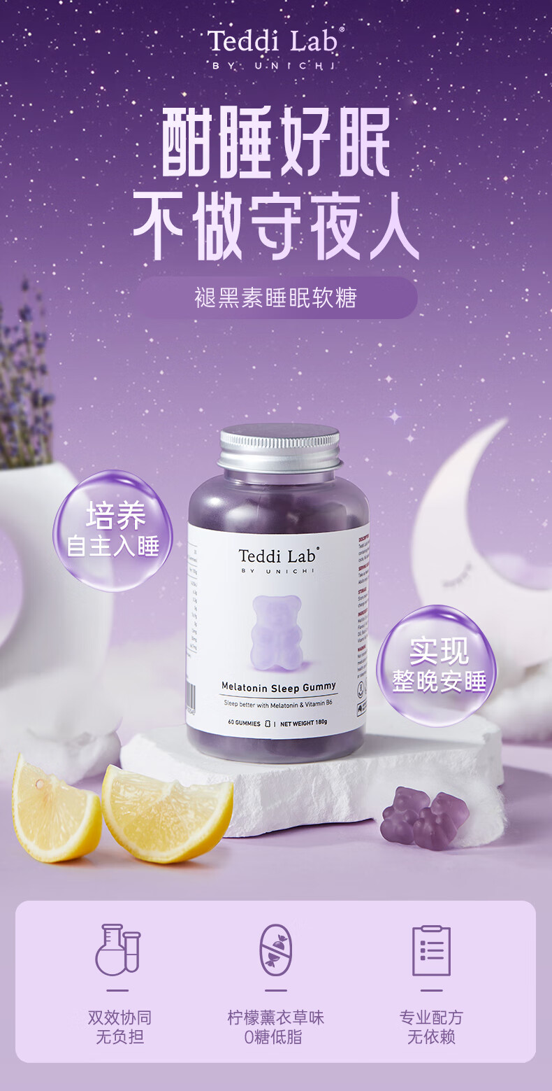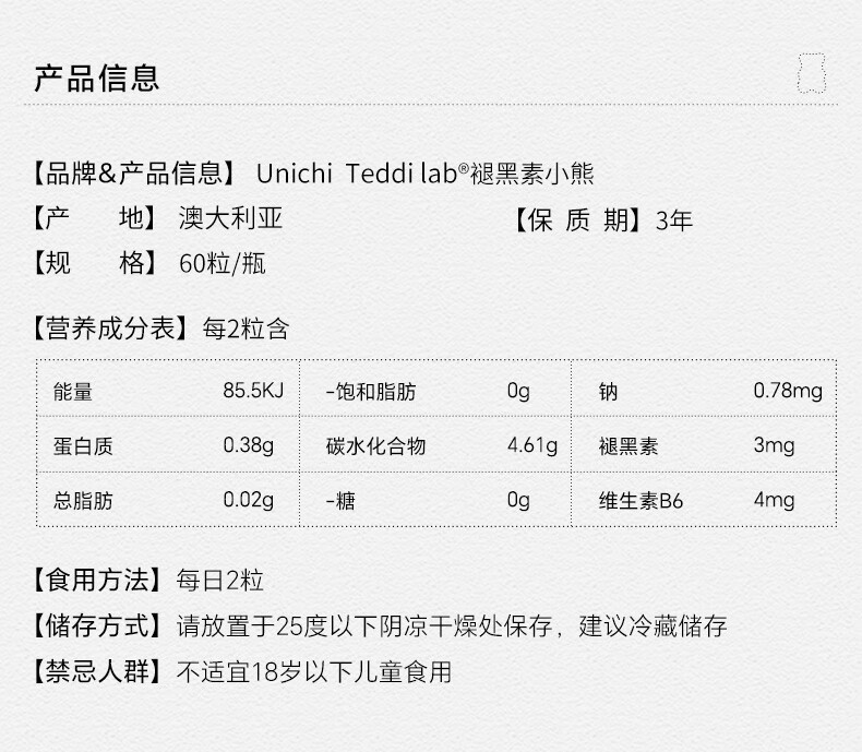 Unichi 澳洲Unichi褪黑素睡眠小熊软糖 60粒 海外本土原版
