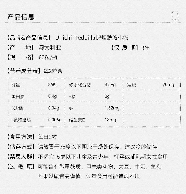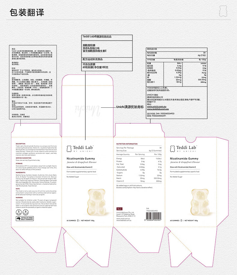Unichi 澳洲Unichi烟酰胺美白小熊软糖 60粒 海外本土原版