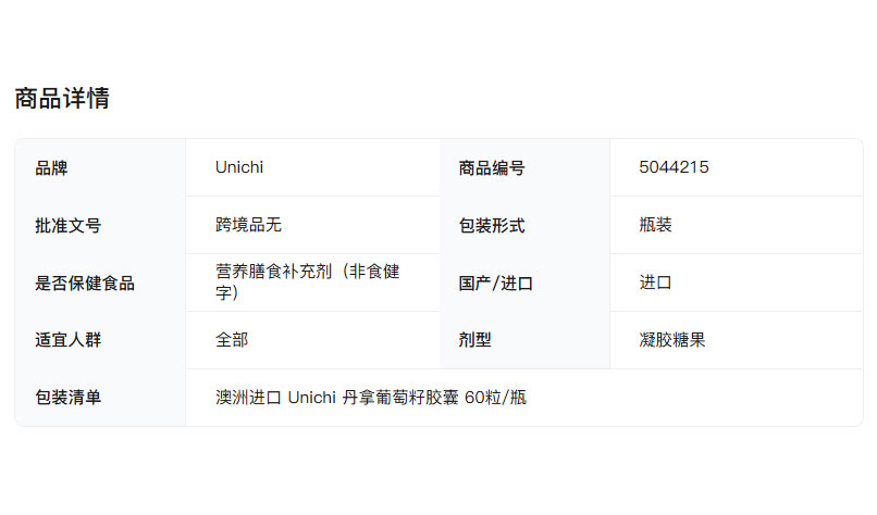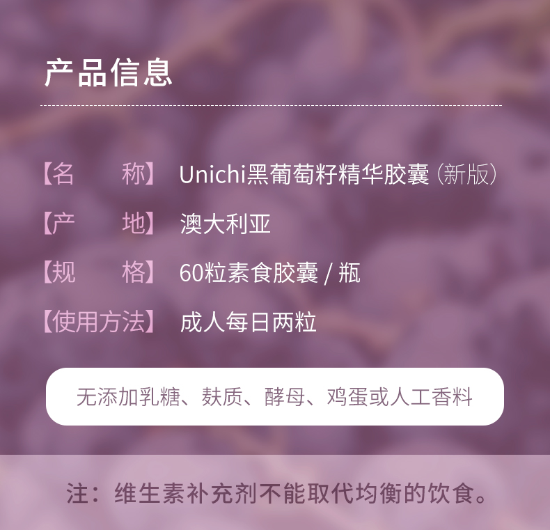 Unichi 澳洲Unichi葡萄籽精华胶囊 60粒 海外本土原版
