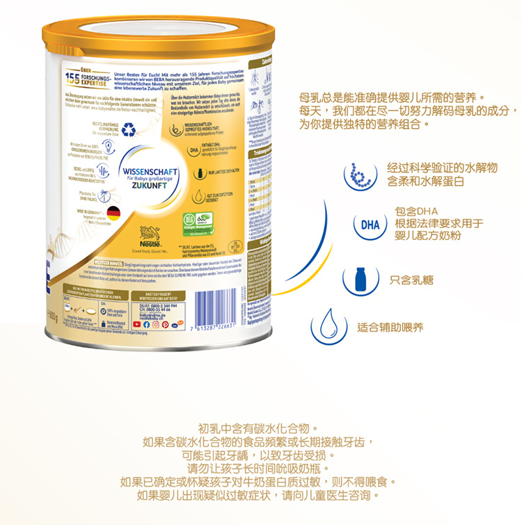 | 产品名称: | 雀巢BEBA至尊PRE段 |