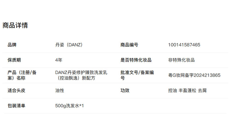 Danz 丹姿修护臻致洗发乳控油飘逸 500g