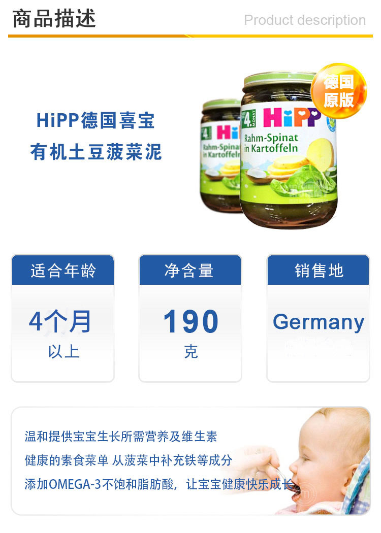 | 产品名称: | Hipp/喜宝有机土豆菠菜泥 |
