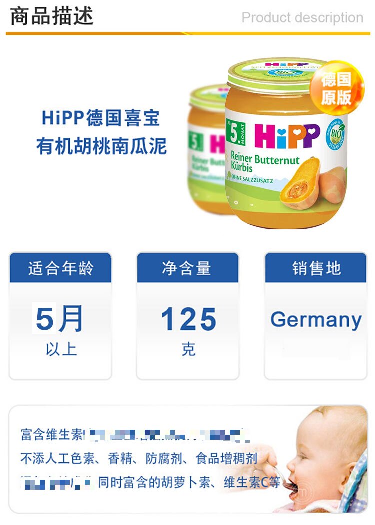 | 产品名称: | Hipp喜宝有机免敏南瓜泥 |