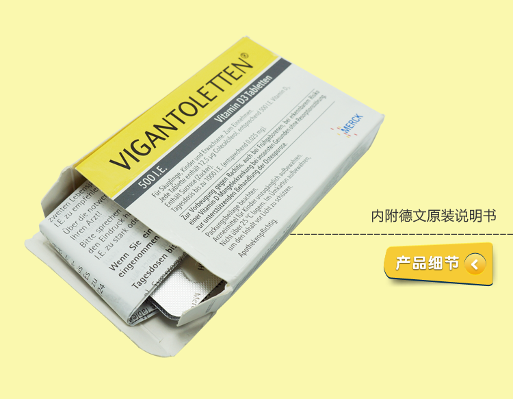 | 产品名称: | 德国默克 Vigantoletten VD儿童维生素D3无氟D500 |