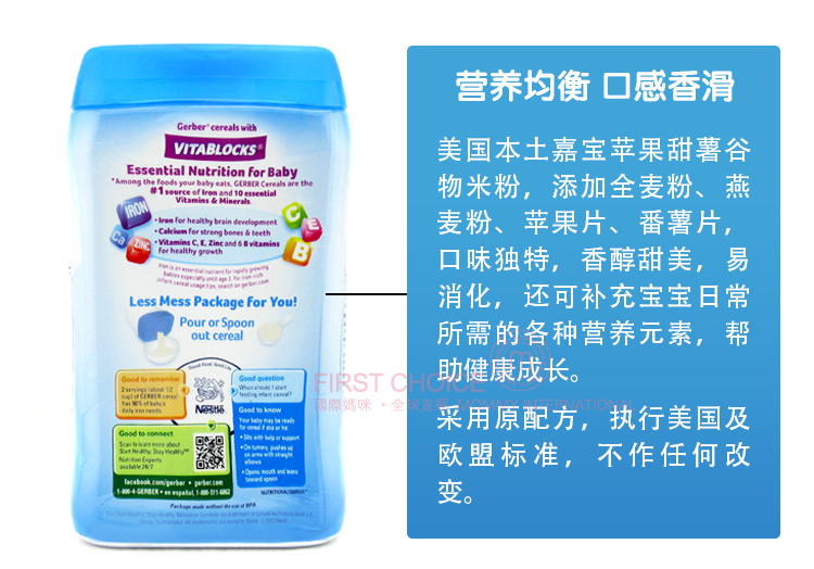 嘉宝是美国品牌,已经拥有90多年的专业经验了,是一个经历了时间考验的婴幼儿食品品牌。其原材料来自全球优质农场,严格的土壤安全检测,确保无有害农药残留。并坚持在24小时内,完成从原料采集到生产瓶装的全过程,保证让宝宝获得最优质的营养补充。90年美国领先婴幼儿食品品牌健康的开始,健康的未来!