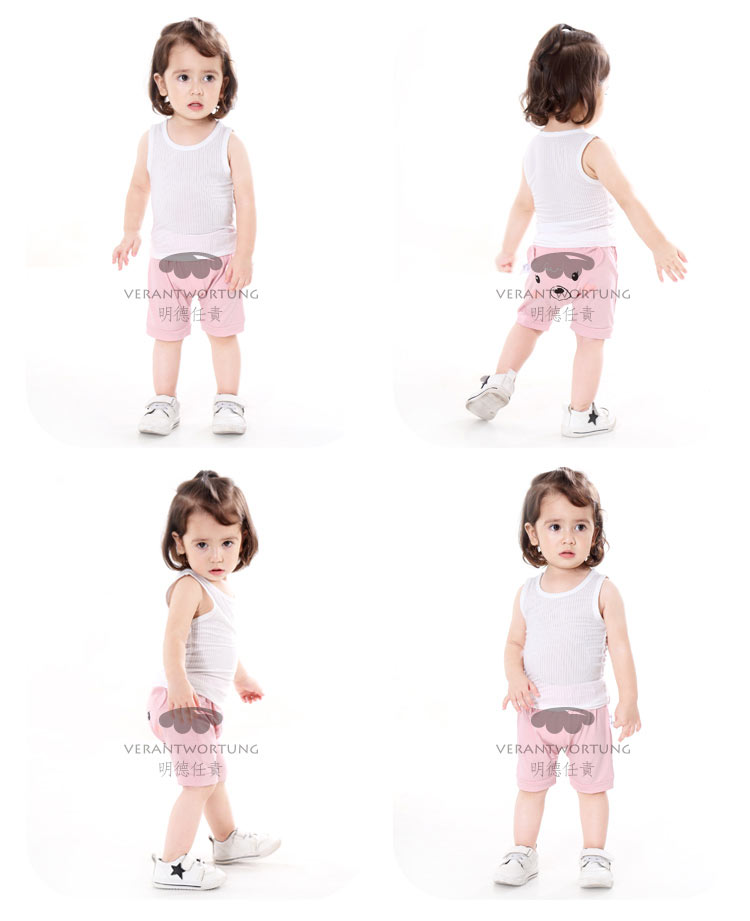 RENZE 明德任责 精品原创 时尚可爱小耳朵熊哈伦五分PP裤 灰色