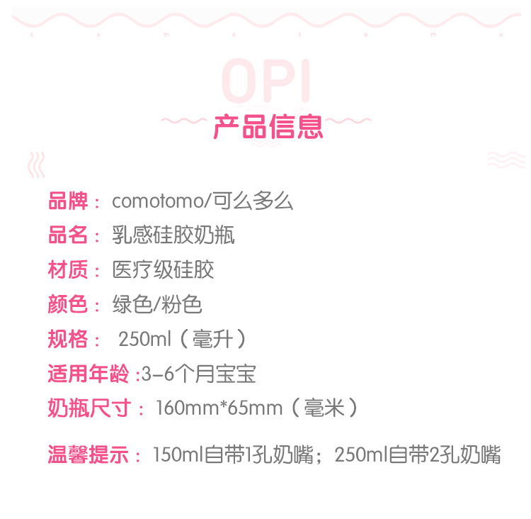 Comotomo 美国可么多么医用硅胶奶瓶 粉色独立装 250ml 3-6个月 海外本土原版