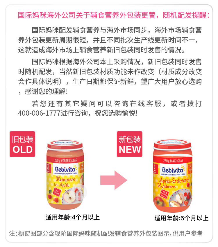 1、划线价、参考价:商品展示的划线价或参考价可能是商品的专柜价、吊牌价或由品牌供应商提供的正品零售价(如厂商指导价、建议零售价等)或该商品在国际妈咪上曾经展示过的销售价,并非原价;由于地区、时间的差异性、商品市场行情的波动以及人民币汇率的变动等因素,品牌专柜标价、商品吊牌价等可能会与您购物时展示的不一致,该价格仅供参考;