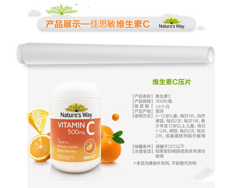 | 产品名称: | Nature's Way 佳思敏vc 500mg 300片【2瓶】 |