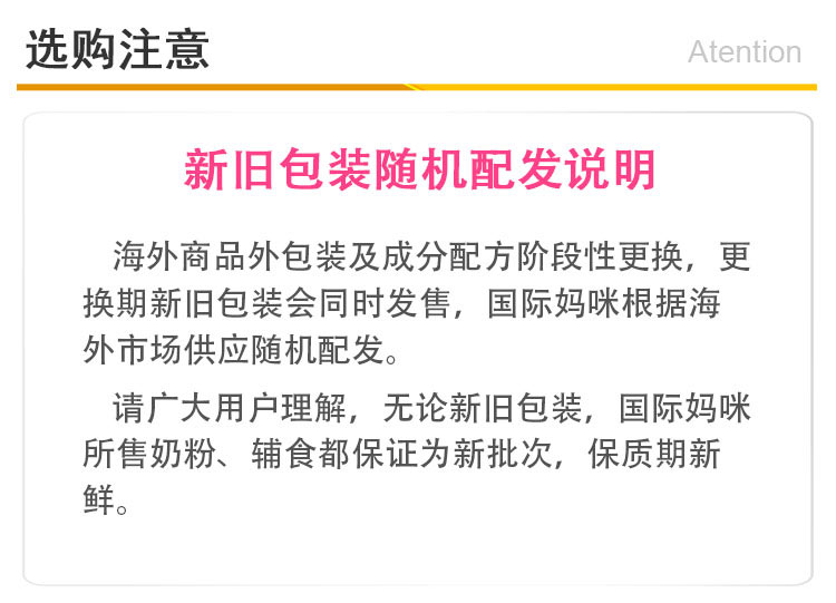 1、划线价、参考价:商品展示的划线价或参考价可能是商品的专柜价、吊牌价或由品牌供应商提供的正品零售价(如厂商指导价、建议零售价等)或该商品在国际妈咪上曾经展示过的销售价,并非原价;由于地区、时间的差异性、商品市场行情的波动以及人民币汇率的变动等因素,品牌专柜标价、商品吊牌价等可能会与您购物时展示的不一致,该价格仅供参考;