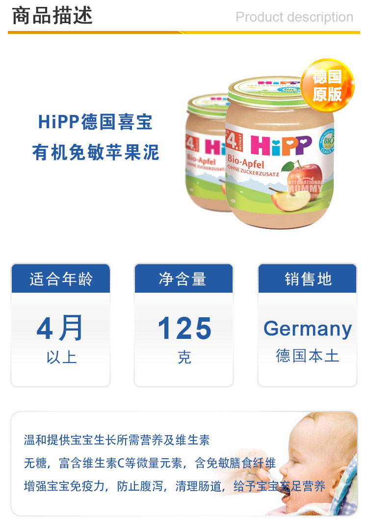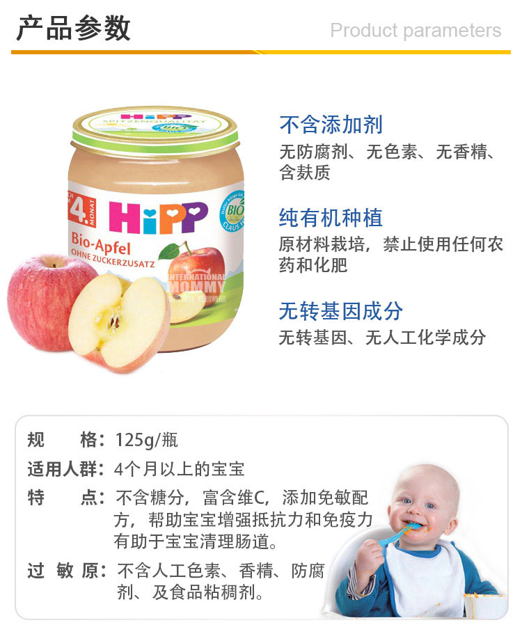 | 产品名称: | Hipp喜宝有机免敏苹果泥 |