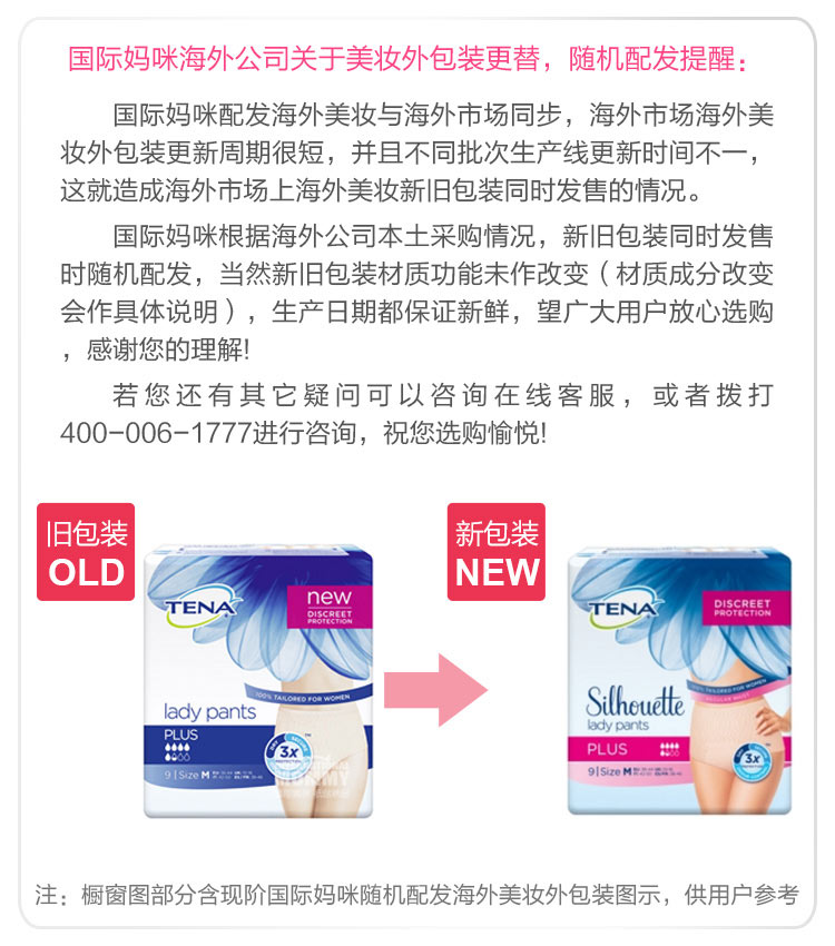 Features 产品特点 1、女生可以当作夜用,大姨妈来的时候晚上睡觉怎么翻滚都不怕啦。 2、采用女性化设计,一次性卫生巾内裤与正常内衣没有区别。 3、柔软的棉质保证舒适的穿着和最高的身体穿着舒适度。 4、在白天和晚上提供清新的感觉。 Parameters 产品参数 适用人群:成年女性 规格:9片 M码 使用方法:穿着方式与普通内裤相同,直接穿上即可。 脱下时从腿部两侧撕开,将脱下的活动裤卷起,置于垃圾桶。 注意事项:请存放于避光、干燥处。 销售地:Germany/德国 品牌:TENA |