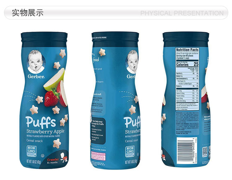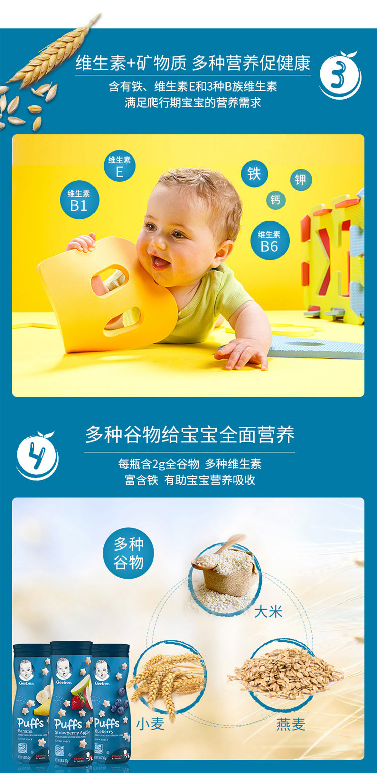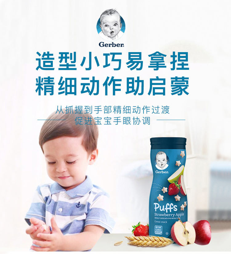 【4件】Gerber 美国嘉宝星星泡芙 草莓苹果味+香蕉味+磨牙饼 苹果味车轮饼+泡芙条 番茄青椒蔬菜味 海外本土原版