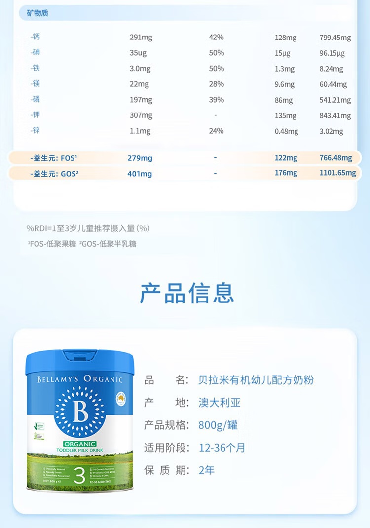 | 产品名称: | BELLAMY\'S/澳洲贝拉米有机婴儿奶粉 |