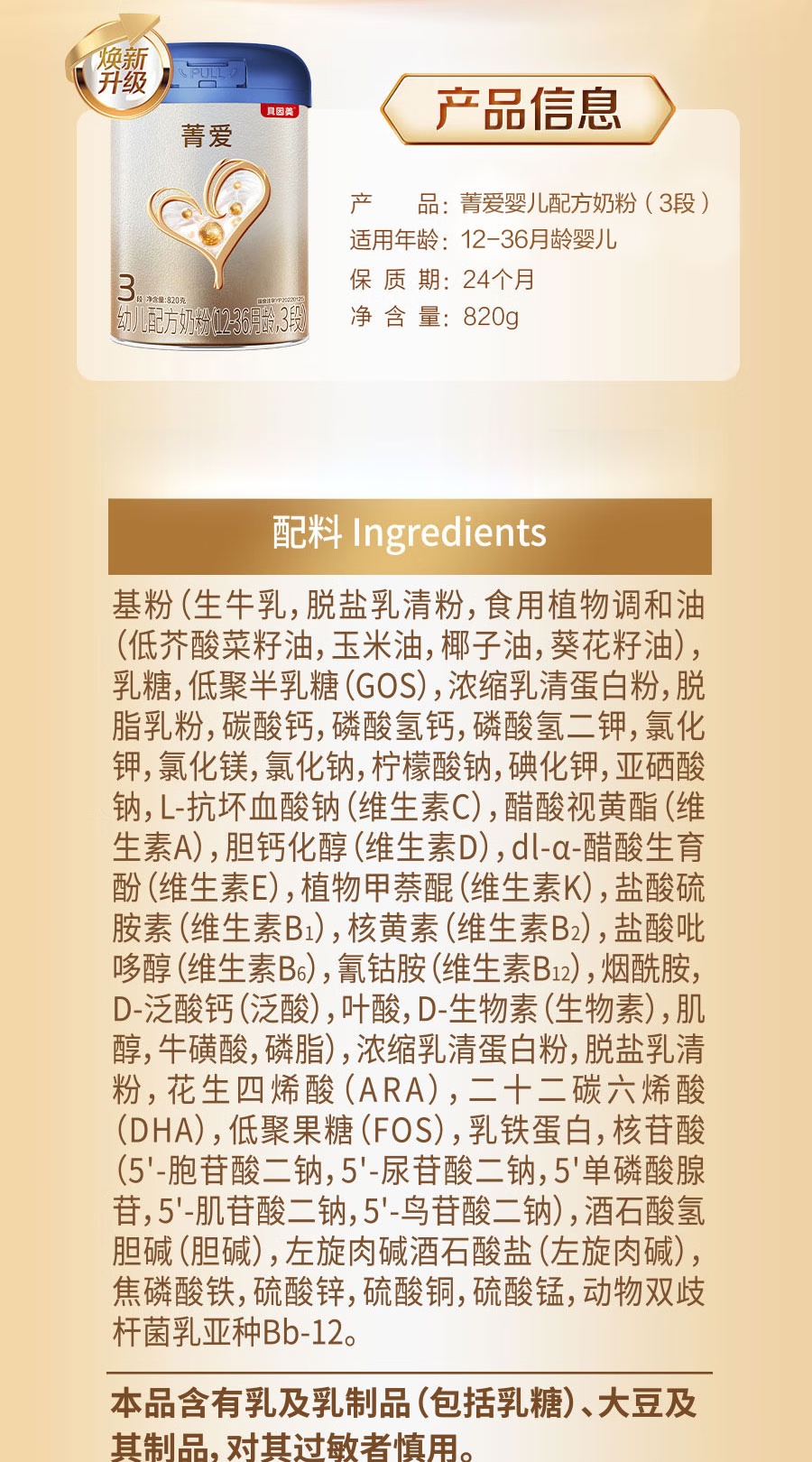 | 产品名称: | BEINGMATE 贝因美菁爱幼儿配方奶粉 |