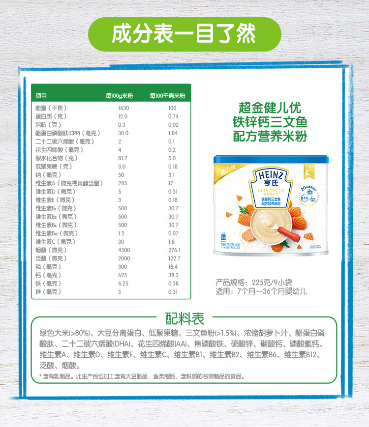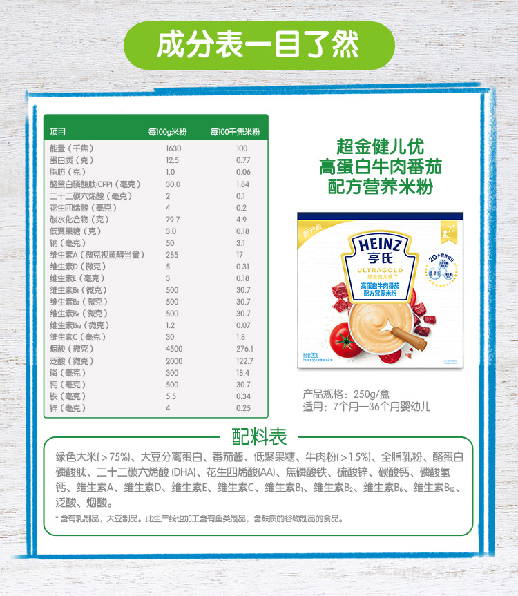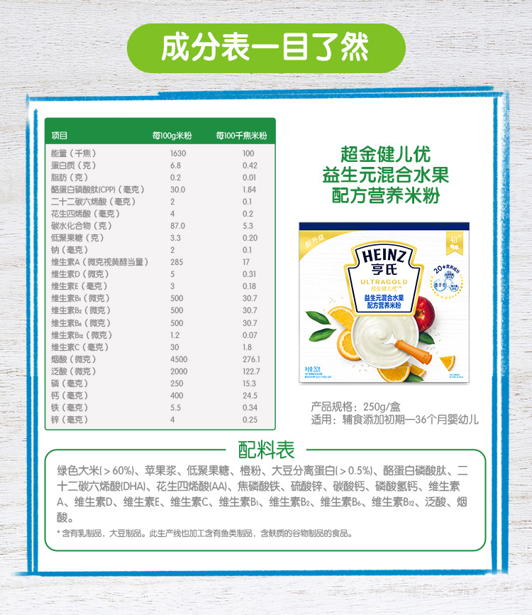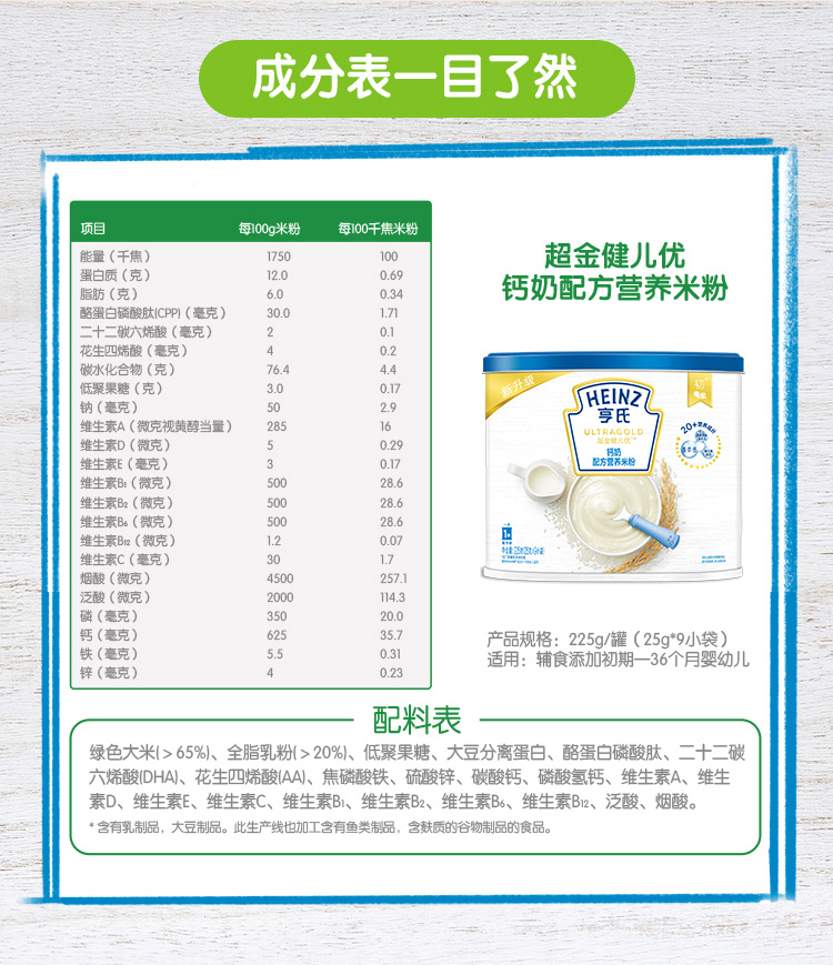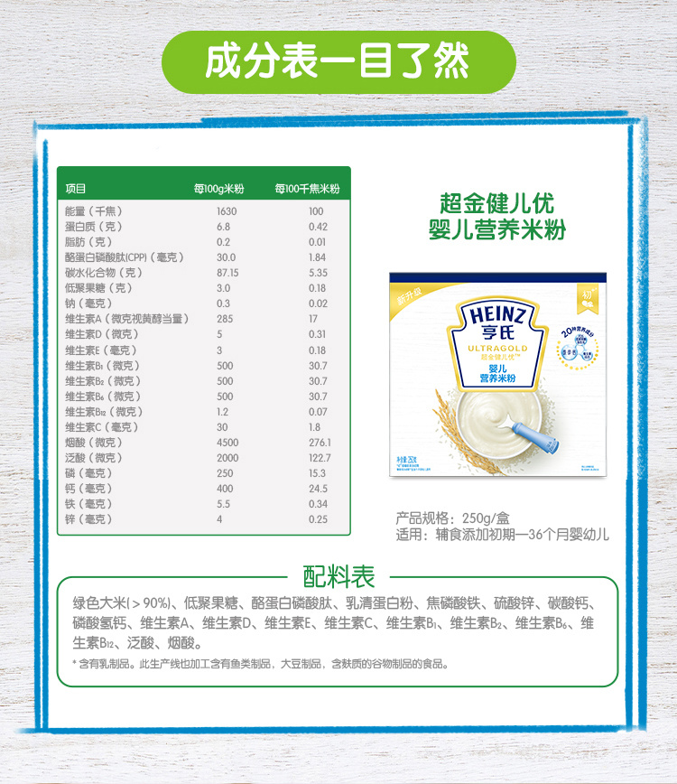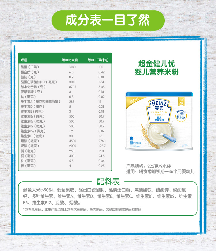 产品名称: 亨氏CPP超金健儿优婴儿营养米粉