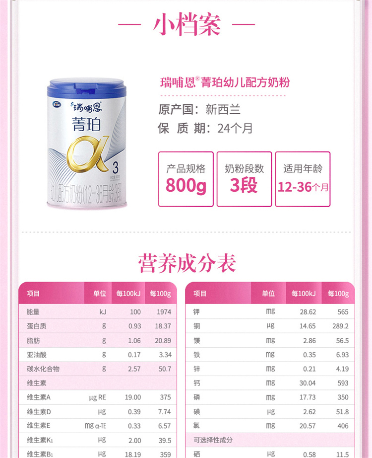 | 产品名称: | 瑞哺恩菁珀幼儿奶粉3段 |