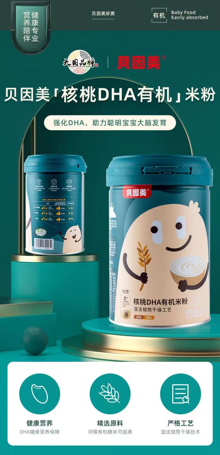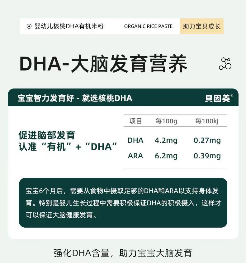 | 产品名称: | 婴幼儿核桃DHA有机米粉 |