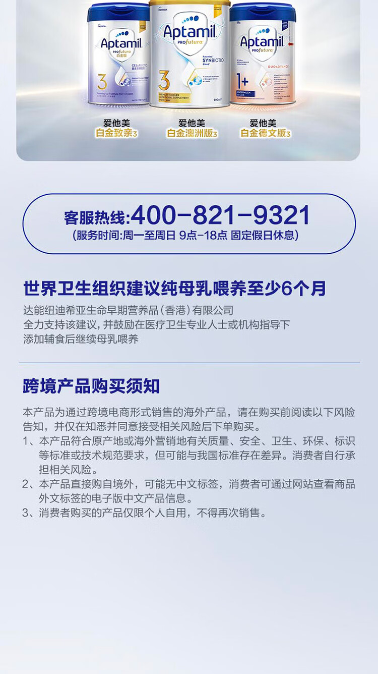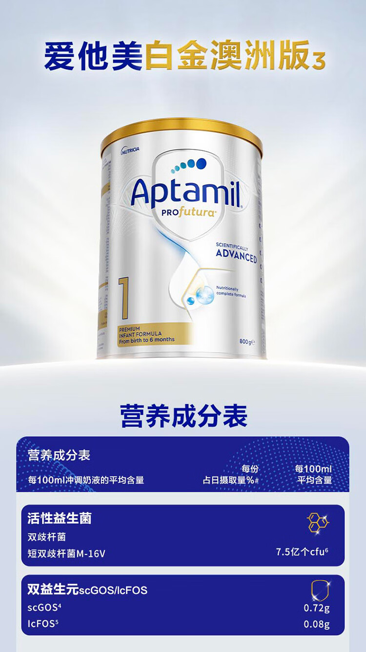 | 产品名称: | Aptamil/澳洲爱他美白金升级版奶粉 |