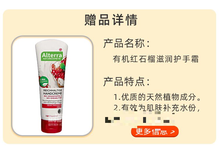 4、含芦荟精华,有效补充肌肤水分,舒缓肌肤,滋润保湿,水嫩肌肤。