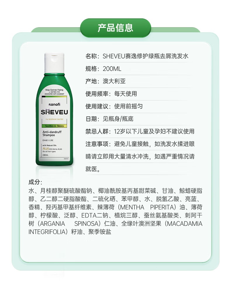 Selsun 澳洲Selsun绿色氨基酸去屑洗发水200ml 海外本土原版